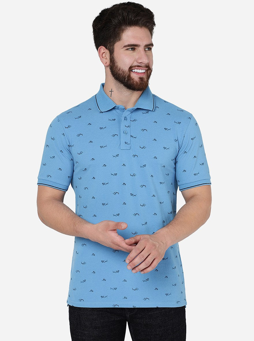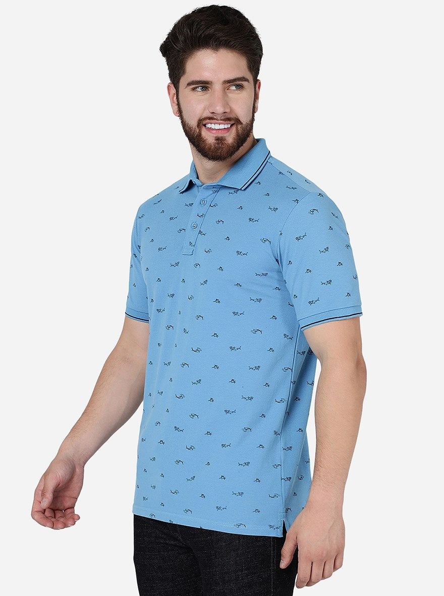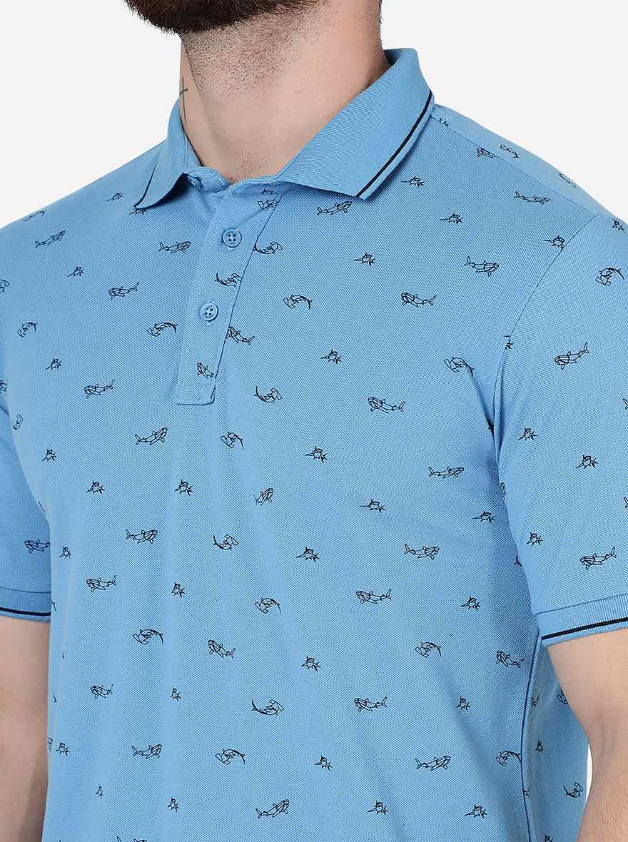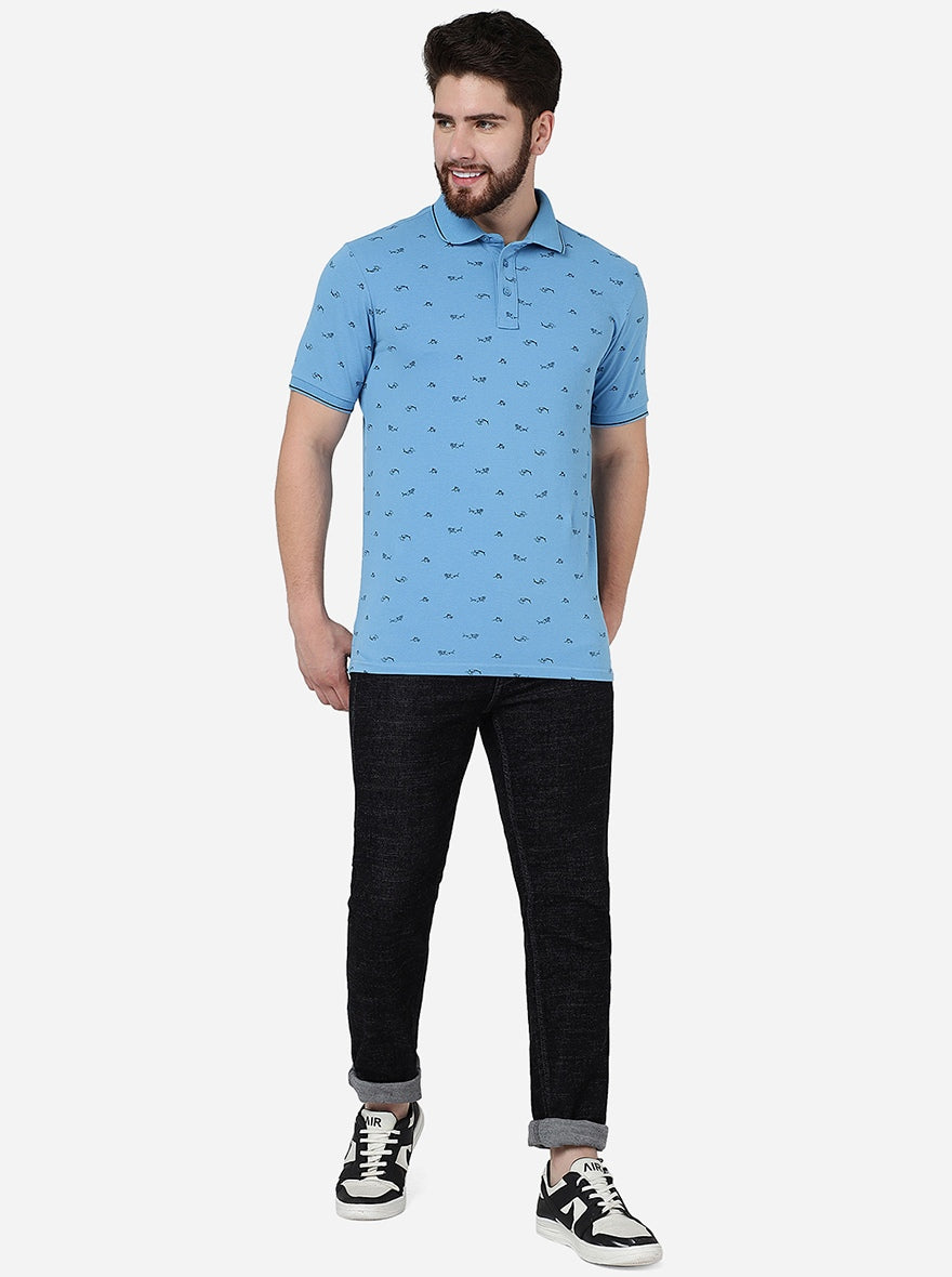 Bonnie Blue Printed Slim Fit Polo T-Shirt | JadeBlue