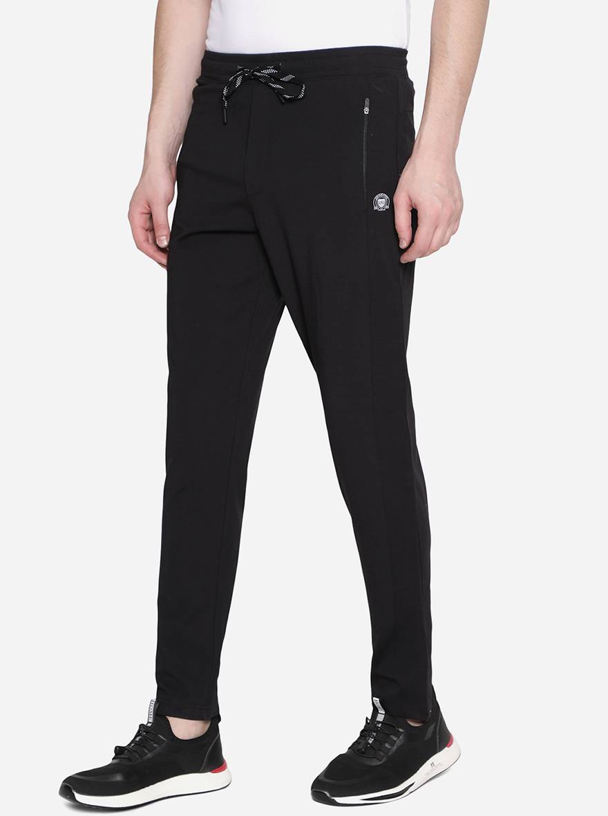 Details: Add this solid black trackpant by JadeBlue to your casual wear collection & let fashion be your identity. This slim fit trackpant is made using soft & smooth cotton fabric, which absorbs sweat and keeps you comfortable all day long. This trackpant features 2 side zipper pockets, 1 rear zipper pocket, drawstring closure and elasticated waist, which lends it a functional touch. Wear this trackpant with your favourite T-shirt, sports shoes and shades for a comfy look effortlessly. Opt for this must-have piece now!