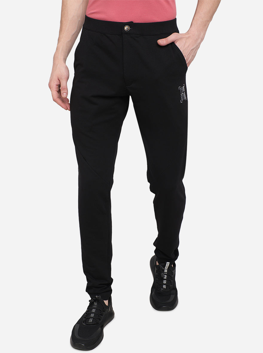 Details: Update your daily wear wardrobe by investing in these fashionable pair of Black track pants from the latest collection of JadeBlue. It features a button and a zip closure for proper fitting. It comes with two pockets on the sides making up for a functional pick. Has a solid pattern that makes it a versatile choice. Made with cotton blend that assures you the best of comfort during all times. Team it with a t-shirt of your choice and sneakers and you are good to go.