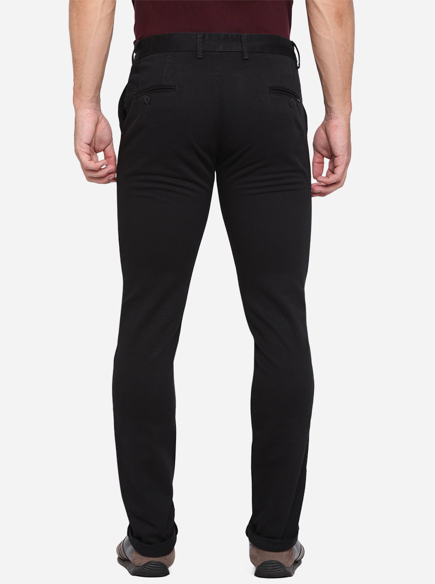 Black Solid Super Slim Fit Casual Trouser | Greenfibre