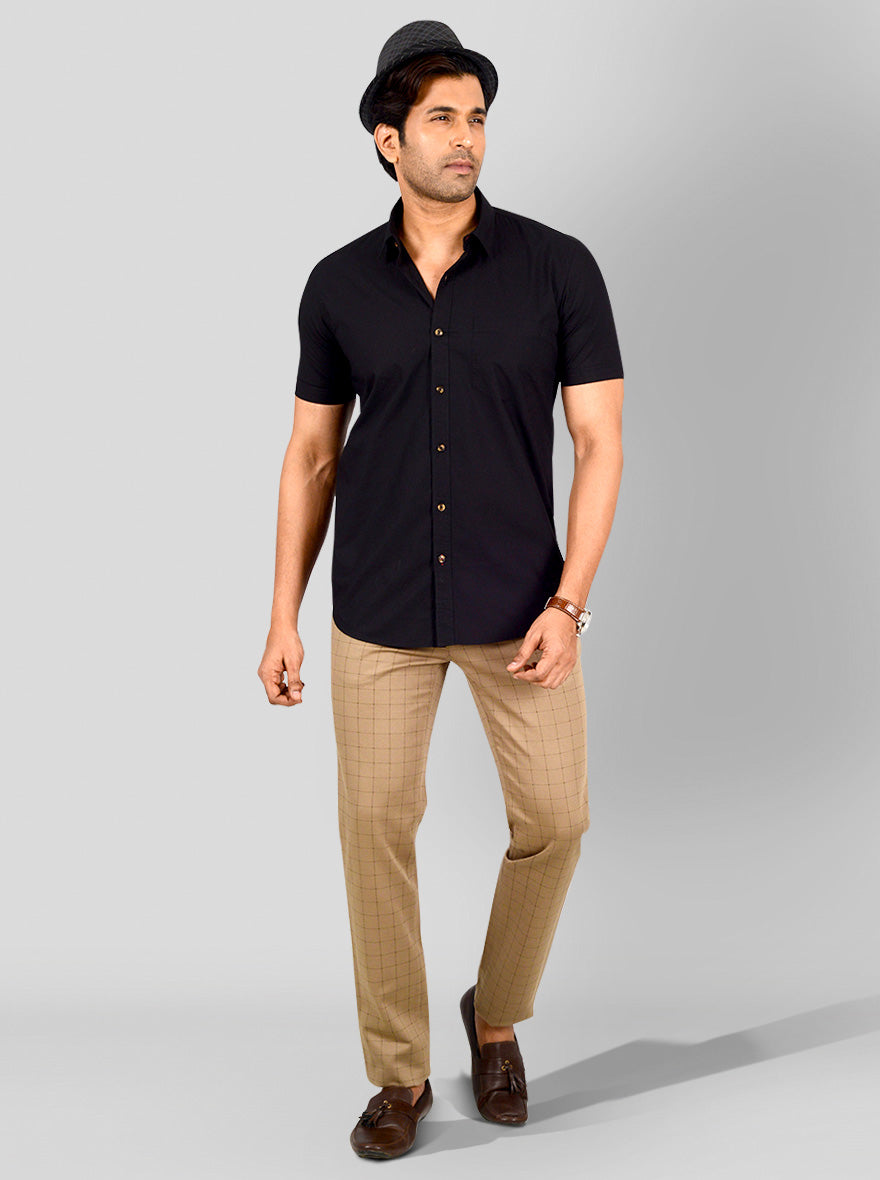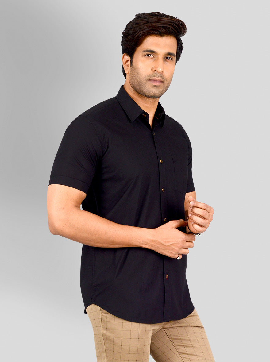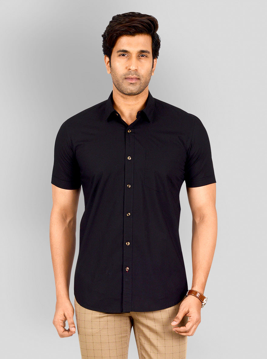 Black Solid Tailored Fit Casual Shirt | JadeBlue