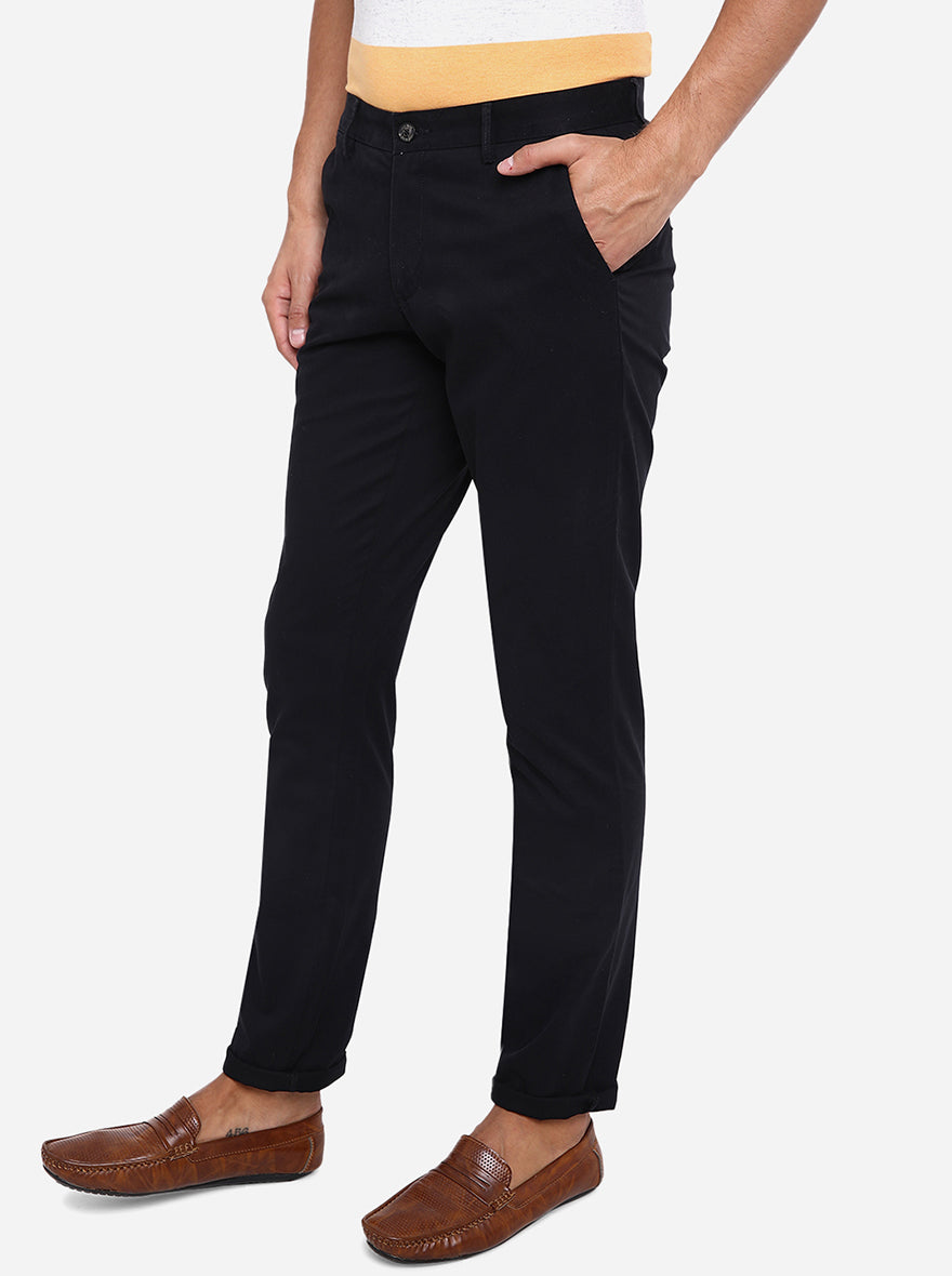 Black Solid Uno Fit Casual Trouser | JadeBlue
