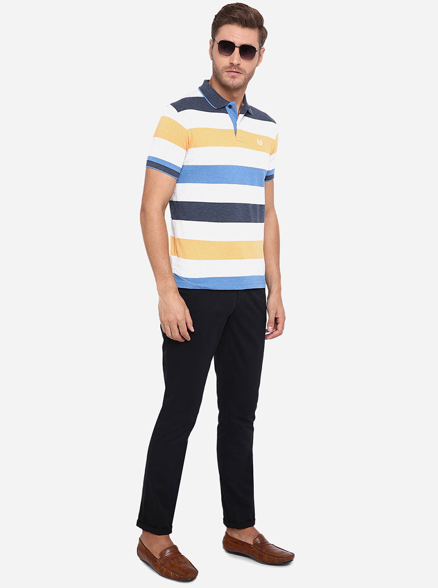 Details: Add these Black Trousers to your wardrobe staples from the latest collection of JadeBlue. It features a button and a zip closure. It has two pockets on the front and two at the back, adding a functional edge to the design. Offers a uno-fit and is adorned with a flat front and a solid pattern, making up for a versatile wardrobe. Crafted with pure cotton, it assures you the utmost comfort at all times. Perfect for casual wear. Tag it with a shirt and classy oxford shoes to complete the look like a pro.