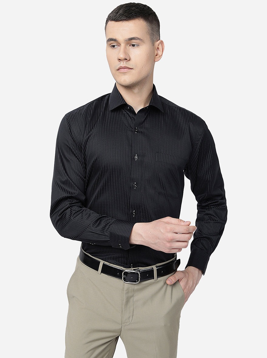Details: These strips gives a party wear look to this Black Formal Shirt from JadeBlue. Built with 100% Cotton fabric ensuring comfort and breathability all day. Offers a Regular fit for a relaxed look which has been elevated with a Striped pattern. Features with a chest pocket, Full sleeves, and a regular shirt collar. Match it with the well-fitted trousers of your choice and a pair of Black oxford shoes and you are ready to go.