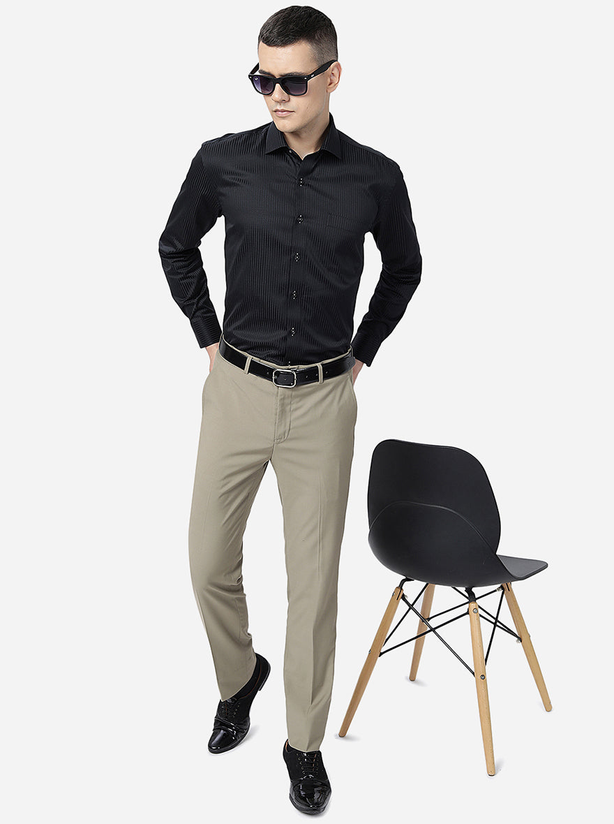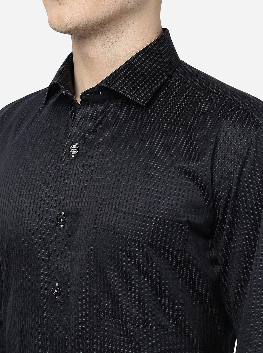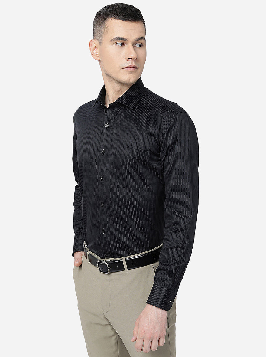 Black Striped Regular Fit Formal Shirt | JadeBlue