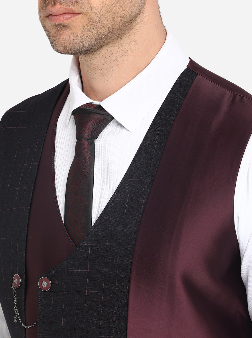 Details: Channel boss vibes everyday with this refined black suit from the brand JadeBlue. It is a premium ensemble that includes a shirt, waistcoat, a jacket and a pair of matching pant. Classic single breasted design, two pocket on the front with a smart waistcoat and a shirt. Adorned with a checkered pattern and contrast collar. Comes with a flat-front trousers which has a hook bar and zip fastening. Offers a regular fit. Crafted with rich Terry Rayon to give a cozy yet comfortable feel wherever you go. Team it with a pair of smart oxford shoes and you are all set to go.