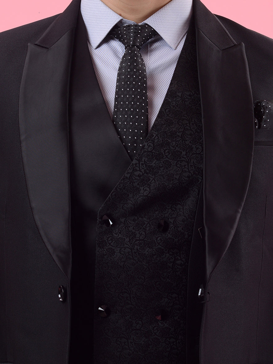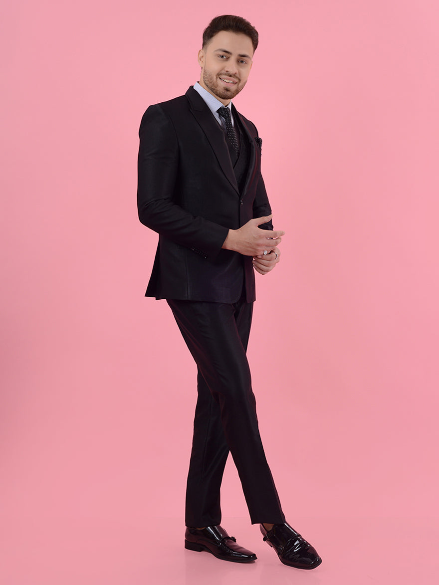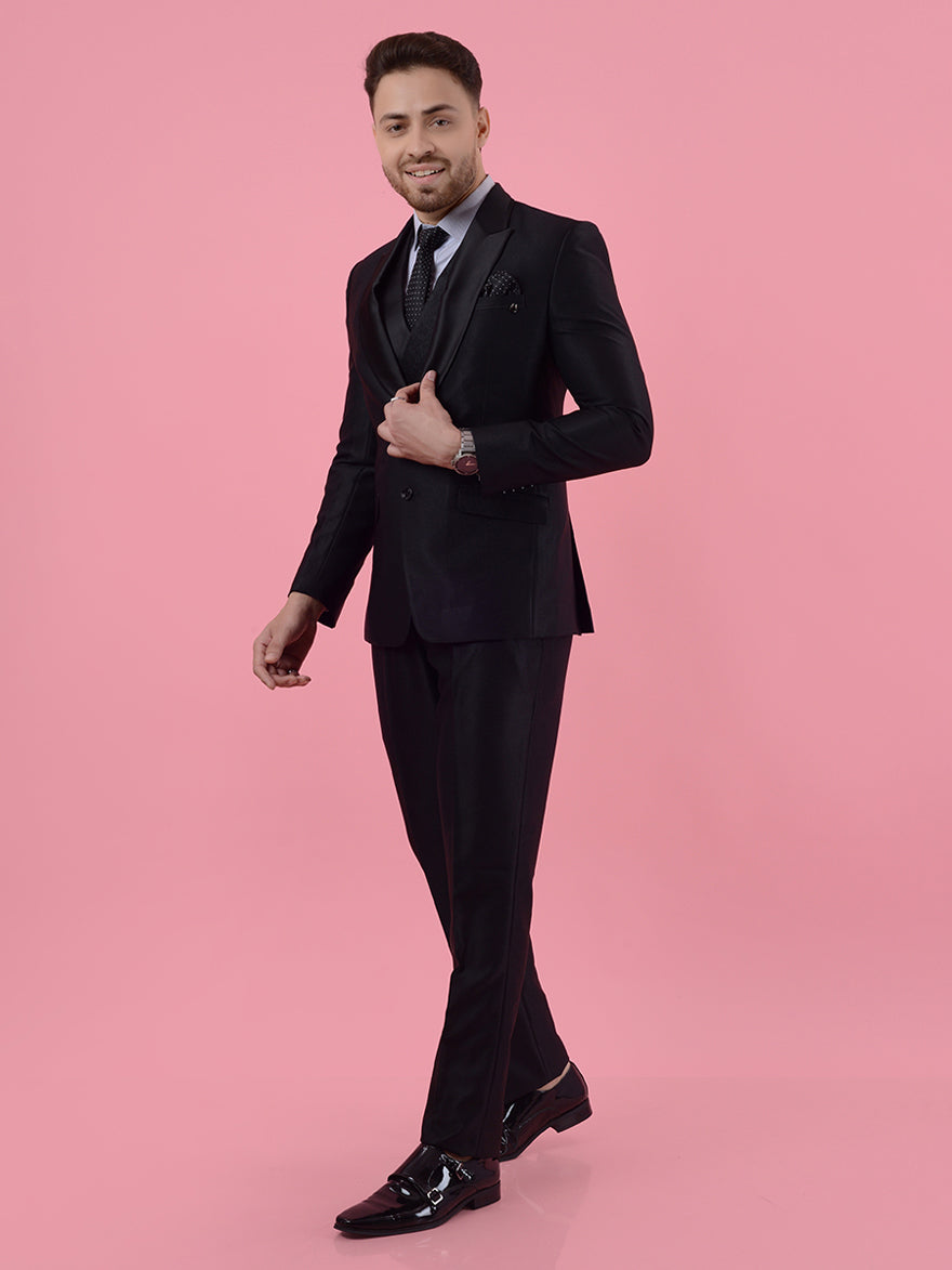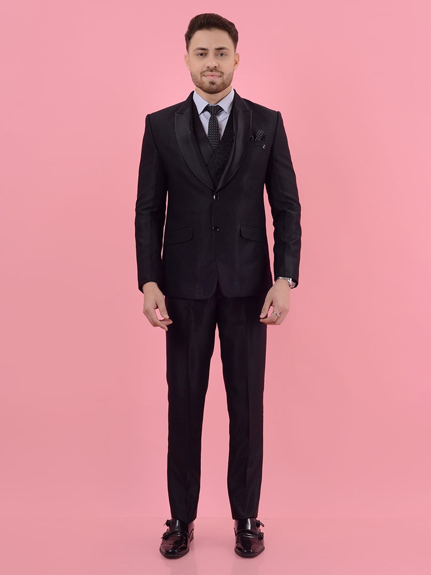 Details: Elevate your formal wardrobe with JadeBlue's Men's Black Suit, designed for the modern man who values sophistication and style. Featuring a classic cut with a Regular Fit, this suit is crafted from luxurious Terry Rayon fabric in a Self Textured pattern, ensuring both comfort and elegance. The Full Sleeve design and 2 buttons, shawl lapel add a touch of refinement to any occasion, making it the perfect choice for a father or brother at a reception. Choose JadeBlue for a Suit that not only exudes class, but also boosts your confidence with every step you take.