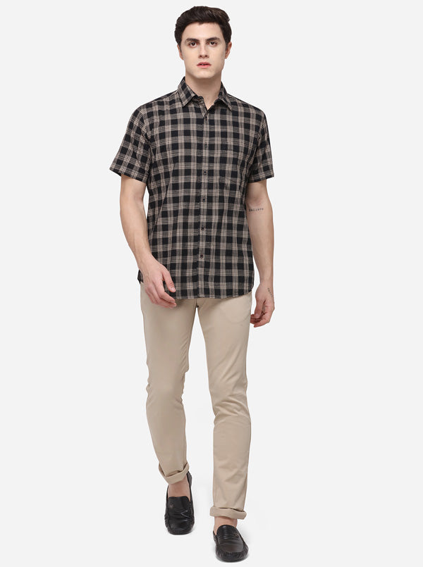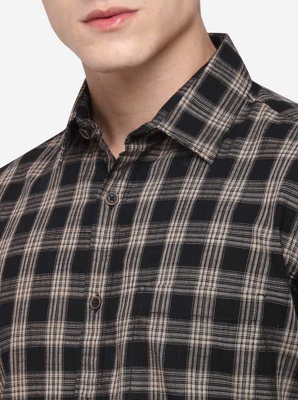 Black Tailored Fit Checked Casual Shirt | JadeBlue