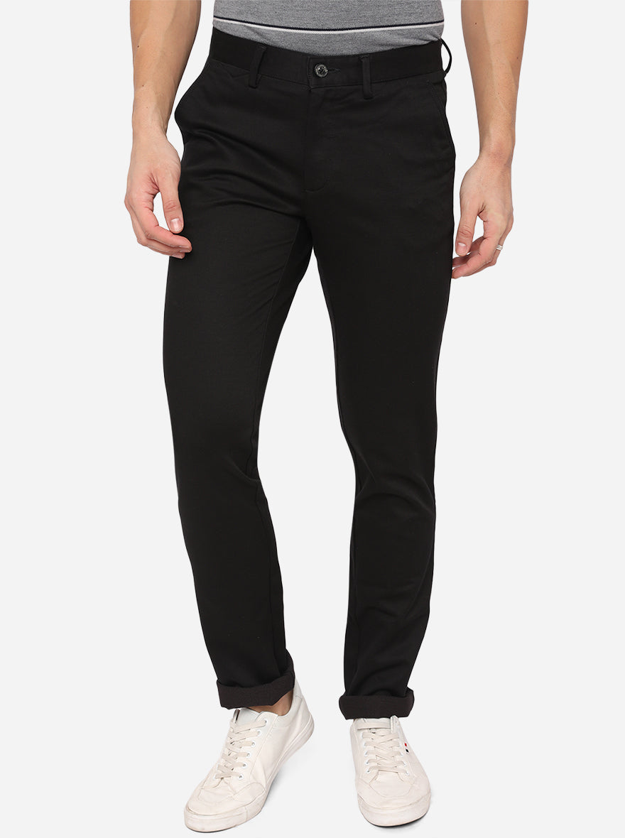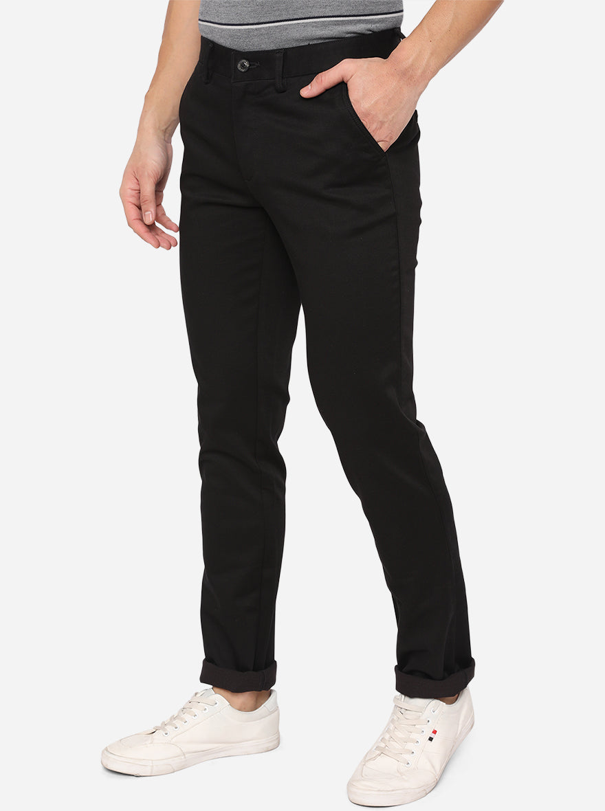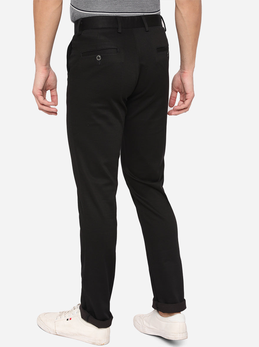 Black Solid Uno Fit Casual Trouser | JadeBlue