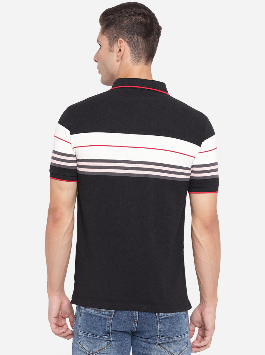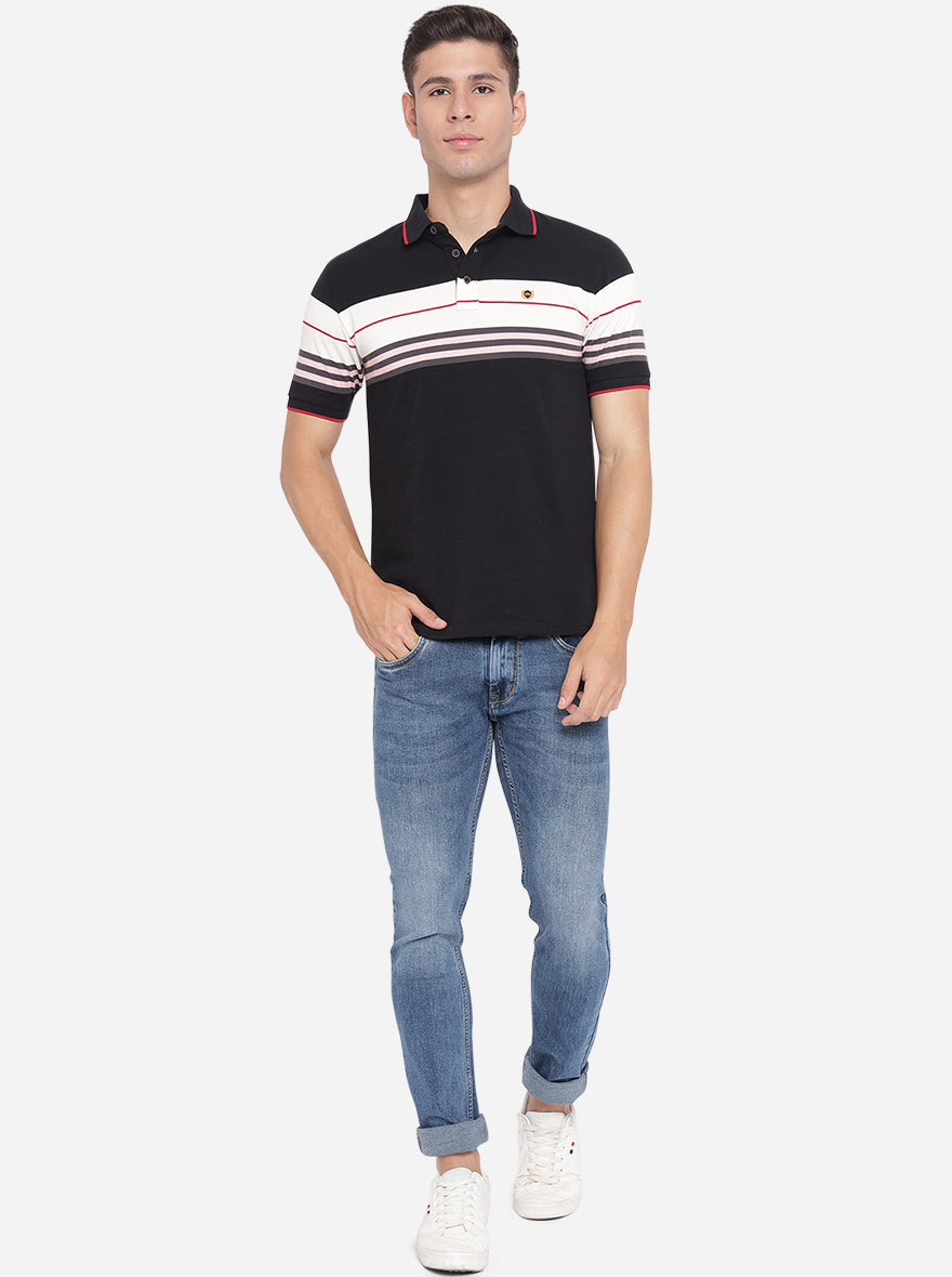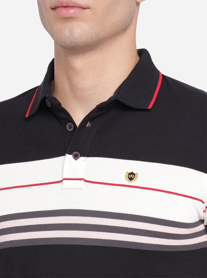 Black & White Striped Slim Fit Polo T-Shirt | JadeBlue