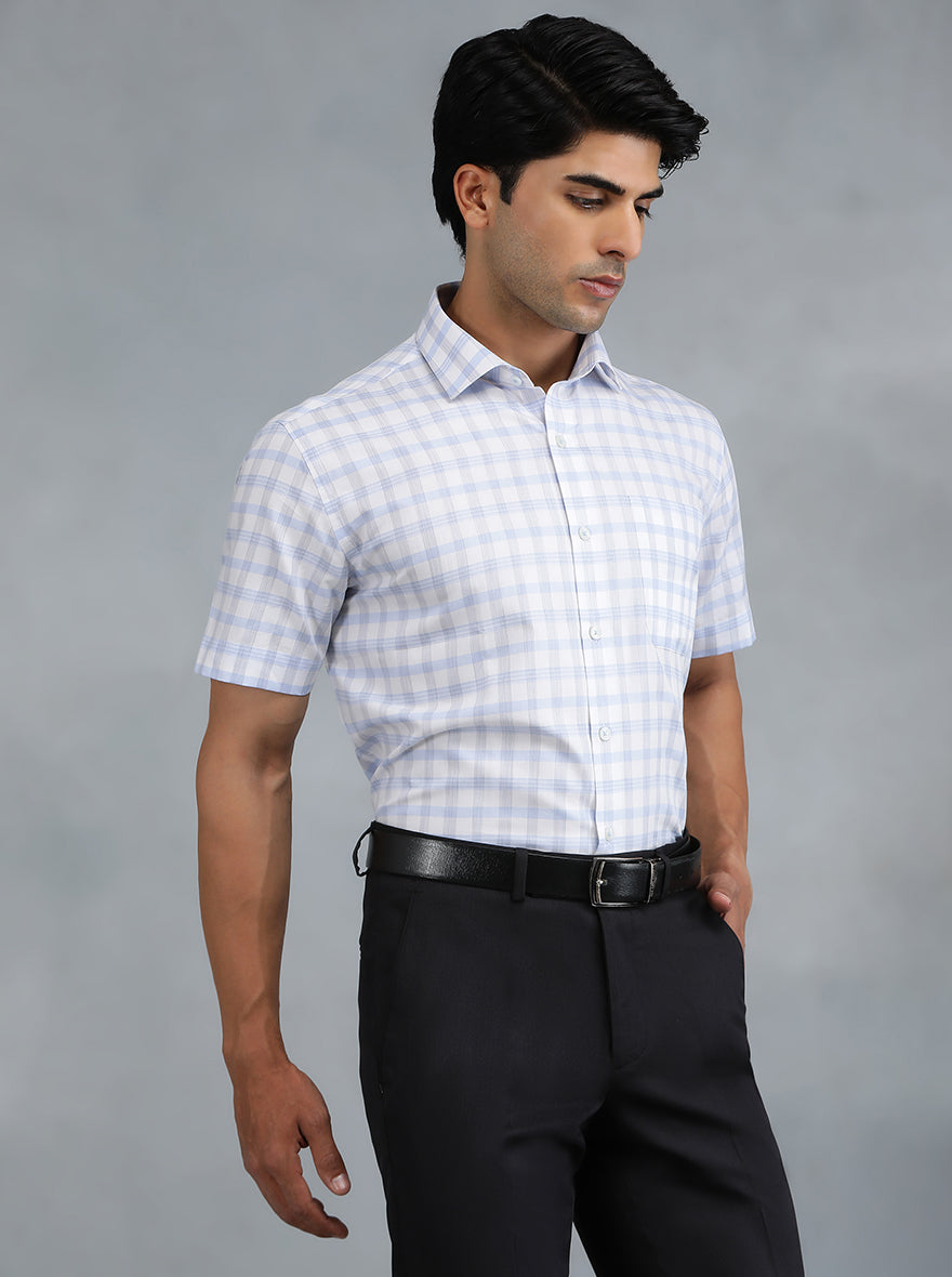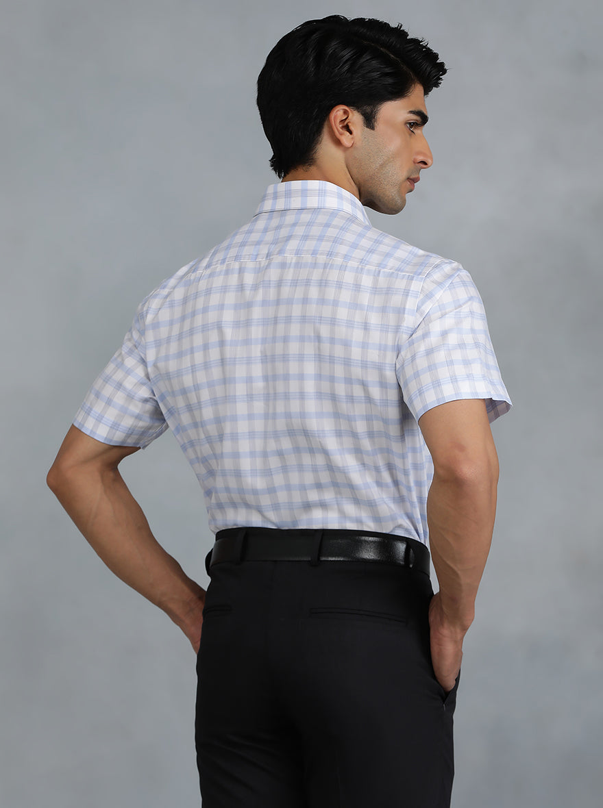 Blue Checked Regular Fit Formal Shirt | Greenfibre