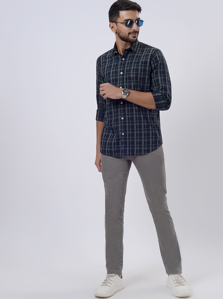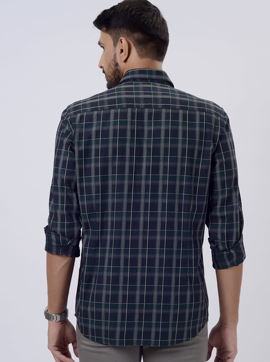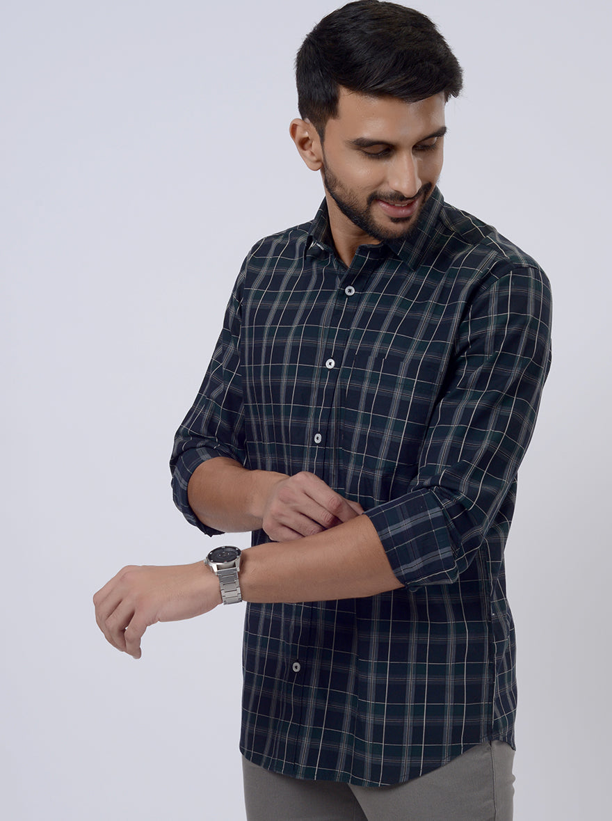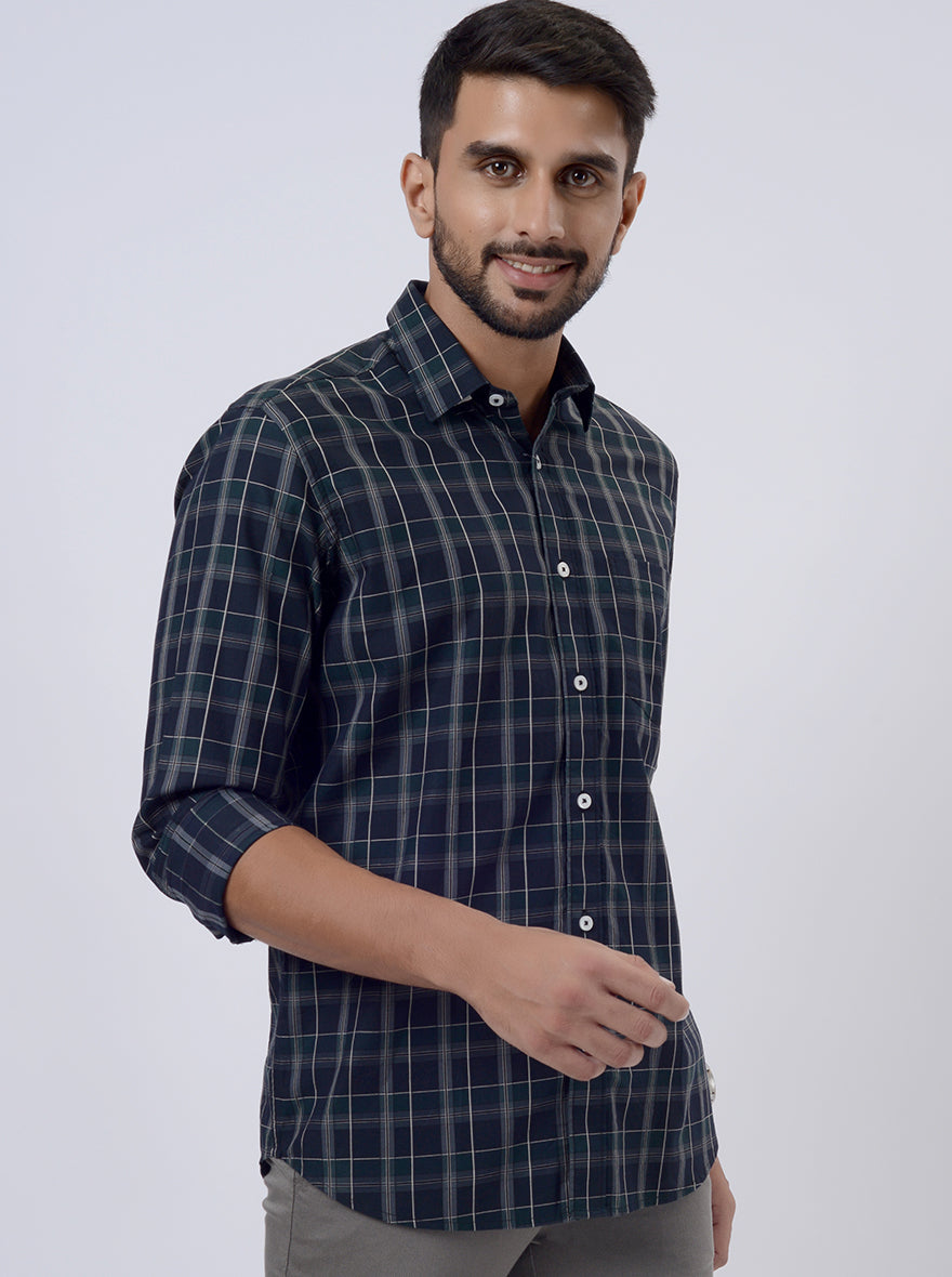 Blue Checked Tailored Fit Semi Casual Shirt | JadeBlue