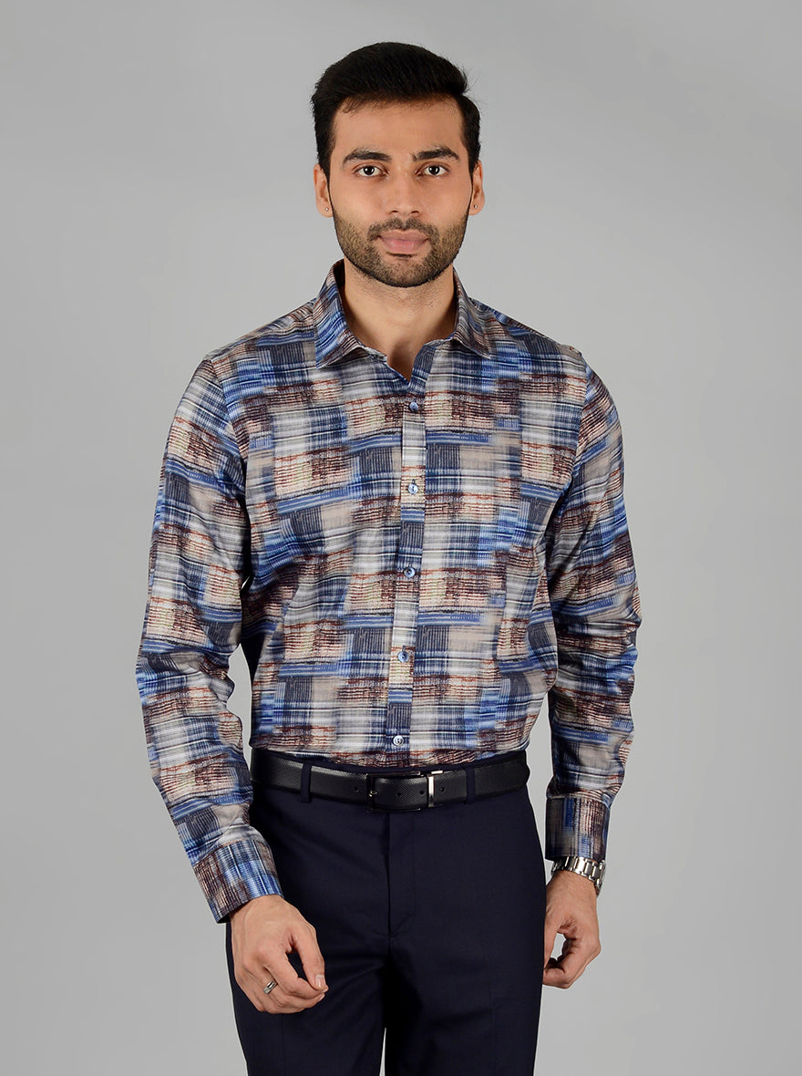 Blue & Coffee Printed Slim Fit Party Wear shirt | Wyre
