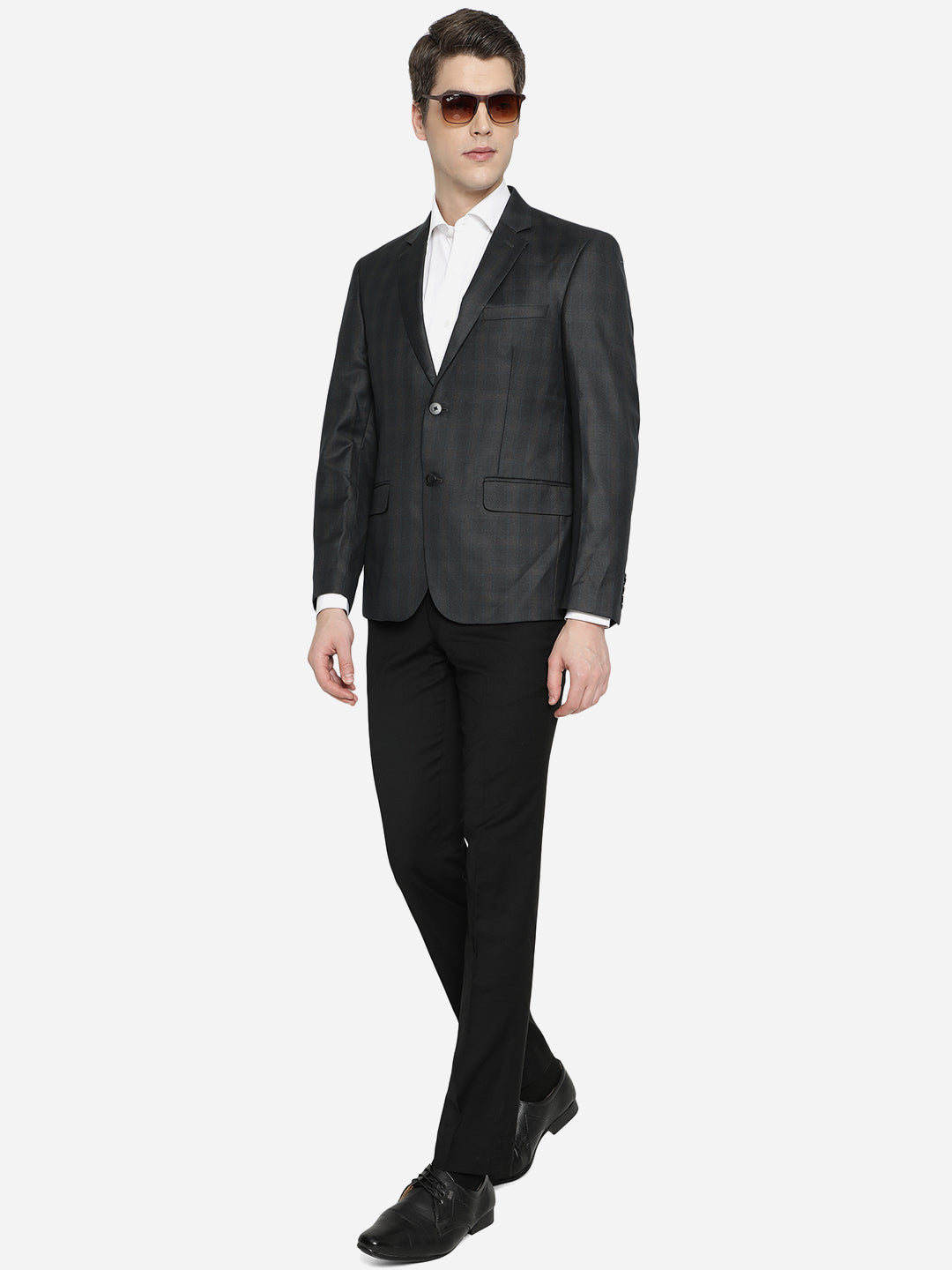 Details: Give a stylish update to your formal wear collection by adding this checked blue and green blazer to it. Made to perfection from terry rayon fabric, this regular fit blazer will bestow you with a decent formal look in a snap. This blazer is styled to perfection and features full sleeves, buttoned cuffs, 2 front buttons closure, standard notch lapel and 2 bottom flap pockets, which lend it a functional touch. Pair this outerwear with a light hued formal shirt, trousers, belt and leather brogues for a decent formal look instantly.