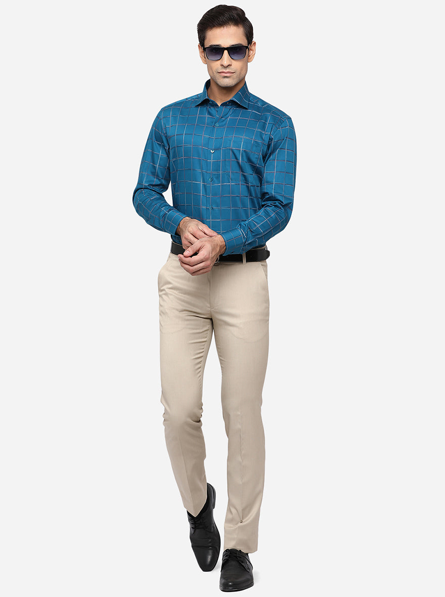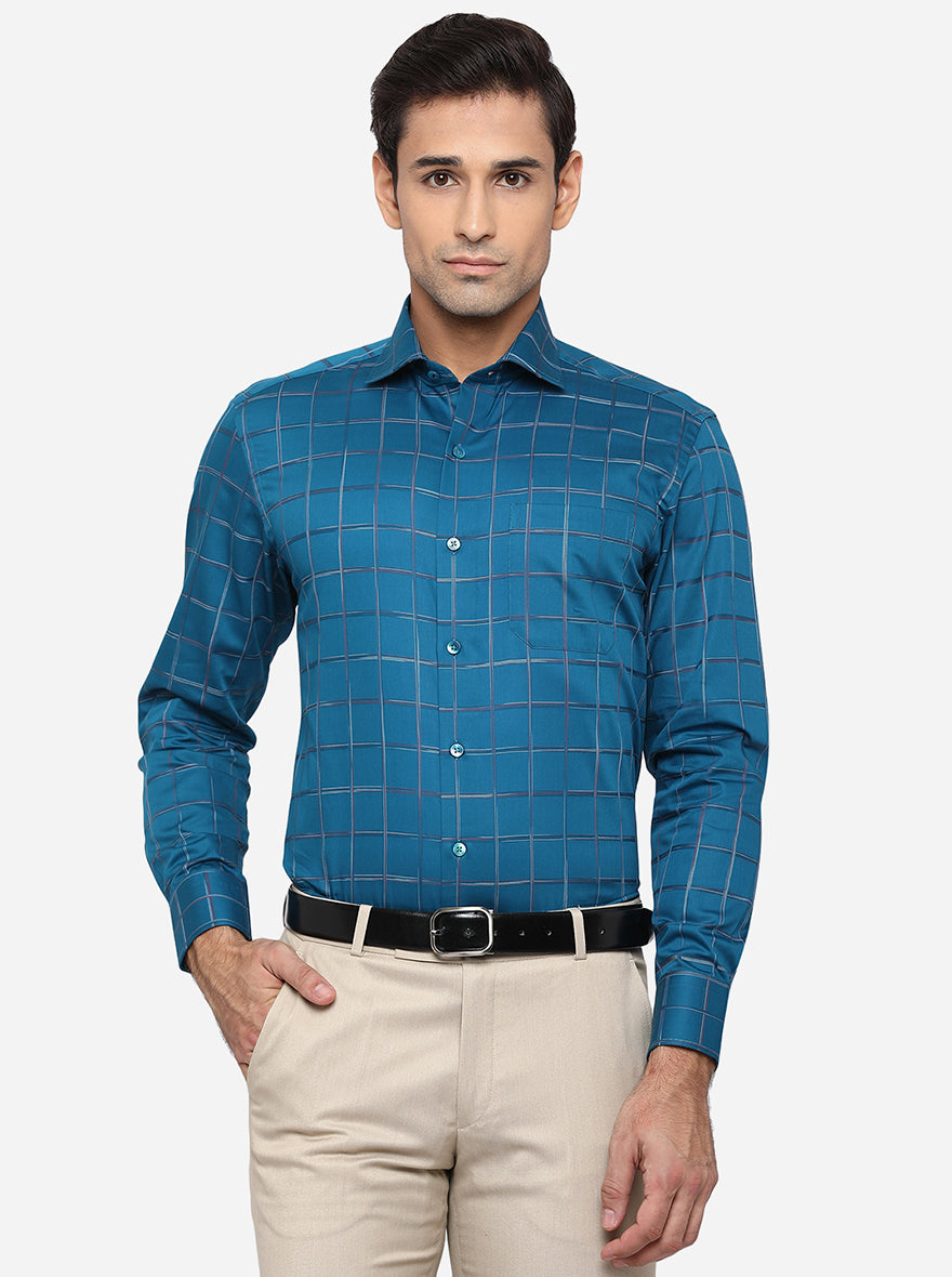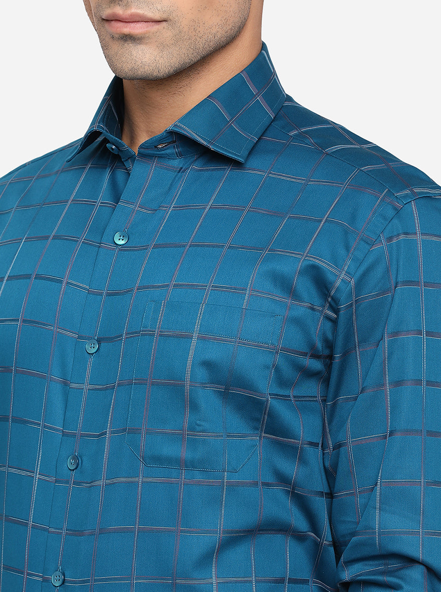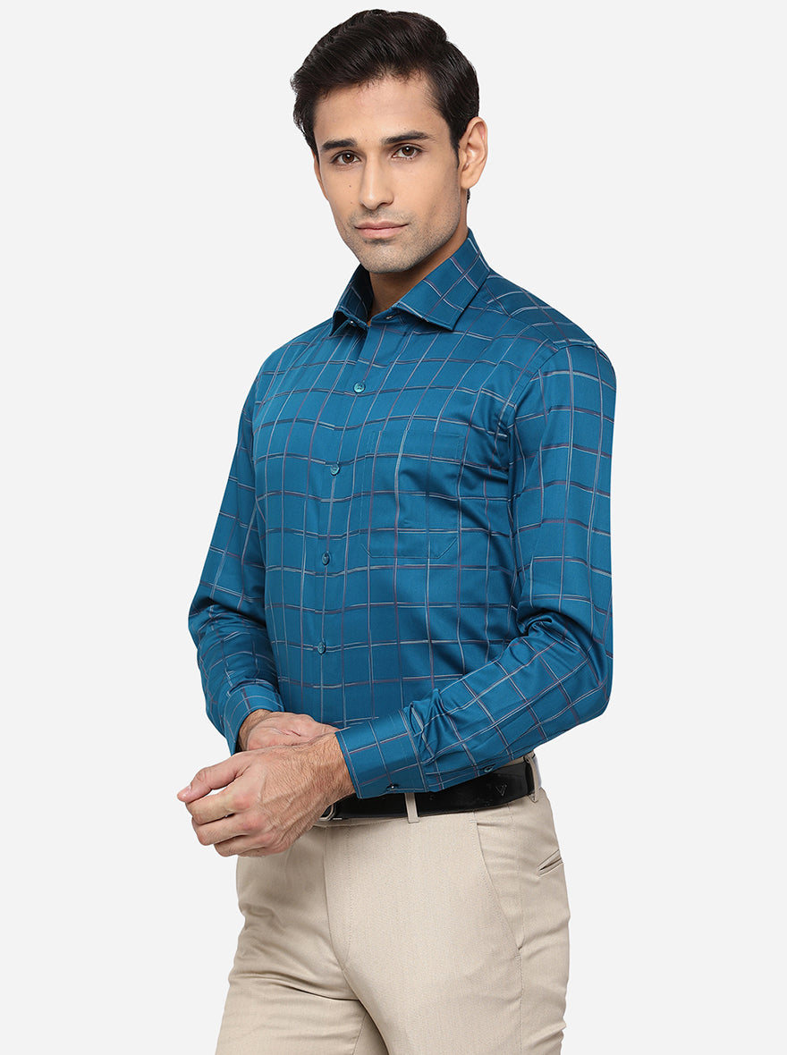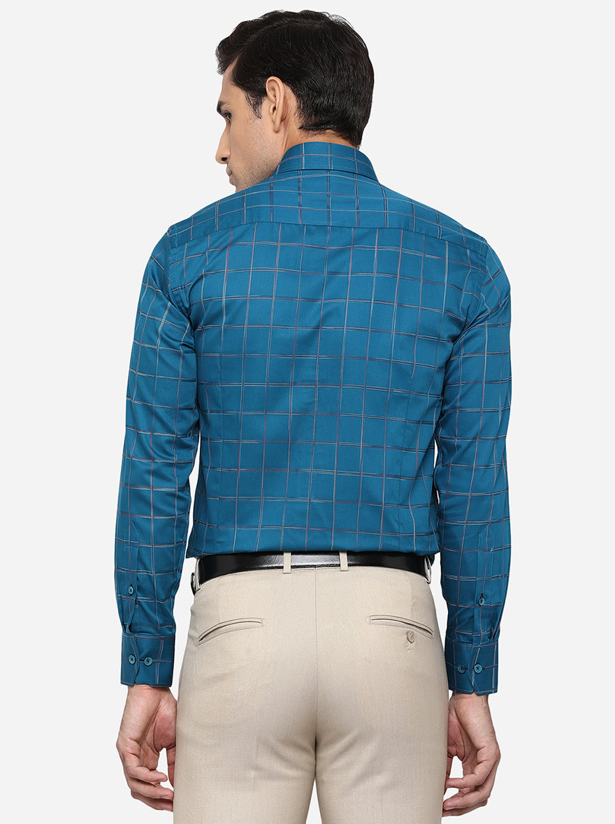 Blue & Green Checked Slim Fit Formal Shirt | Metal