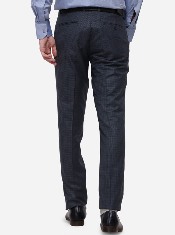 Blue & Grey Checked Super Slim Fit Formal Trouser | JadeBlue