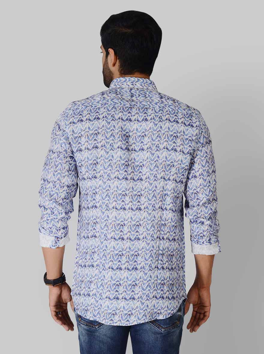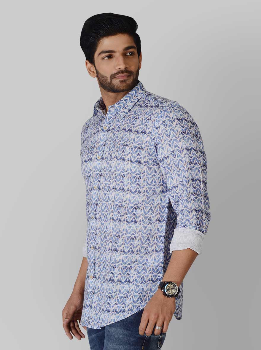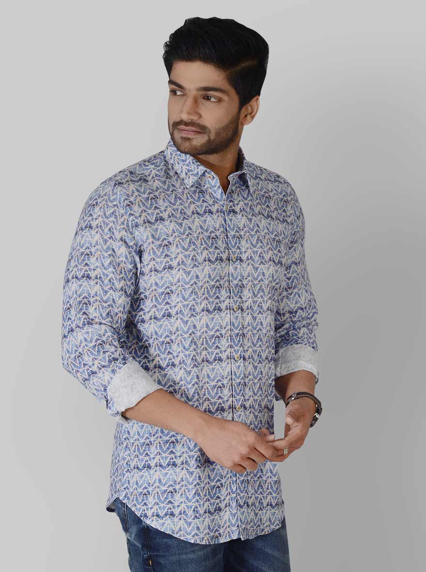 Blue & Grey Printed Slim Fit Casual Shirt | JadeBlue