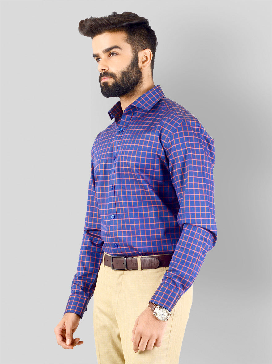 Blue & Orange Checked Slim Fit Evening Wear Shirt | Metal