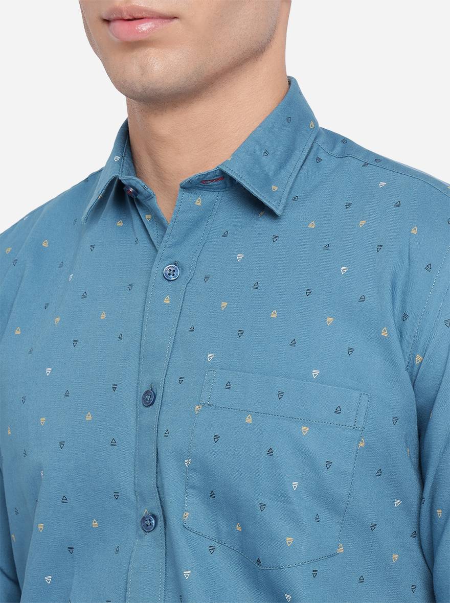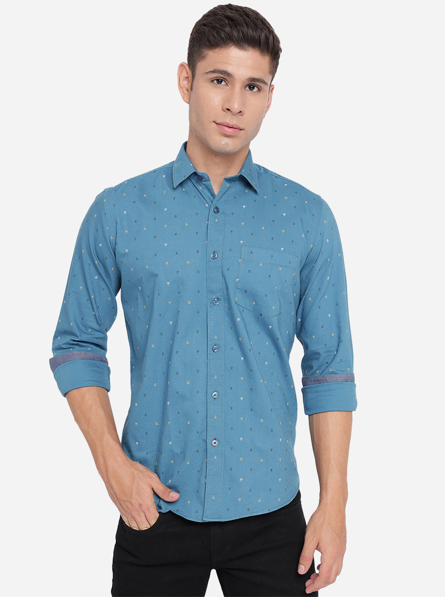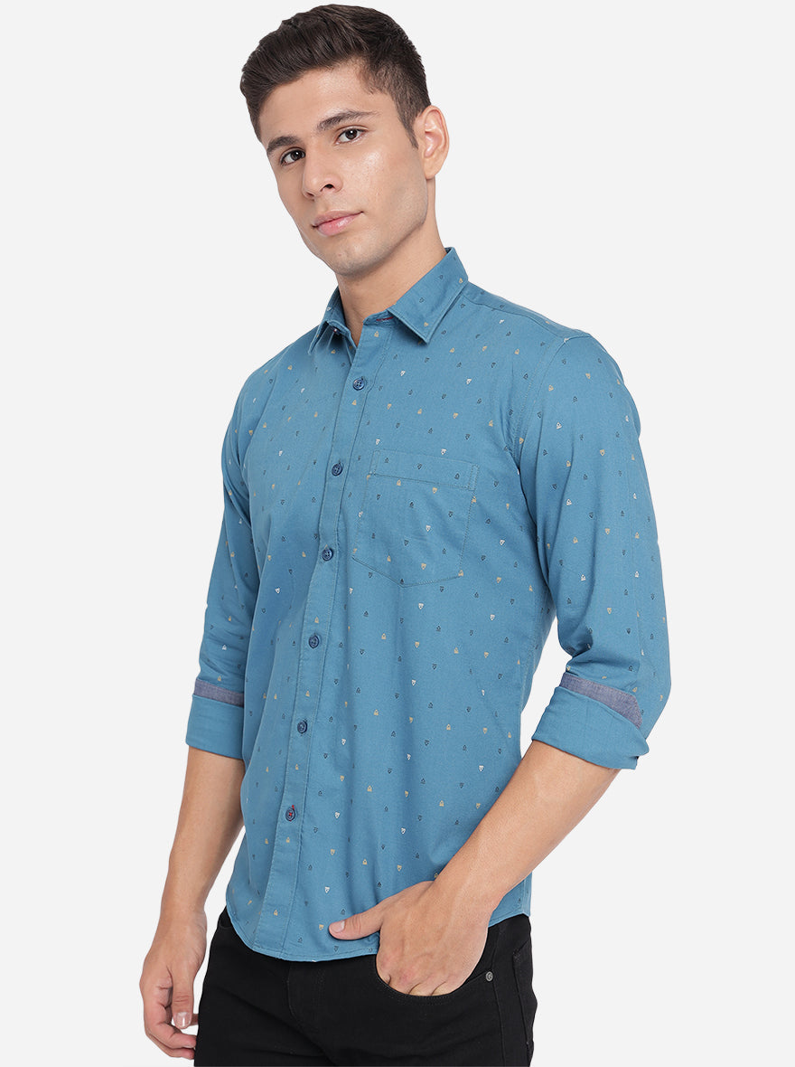 Blue Printed Slim Fit Casual Shirt | Greenfibre