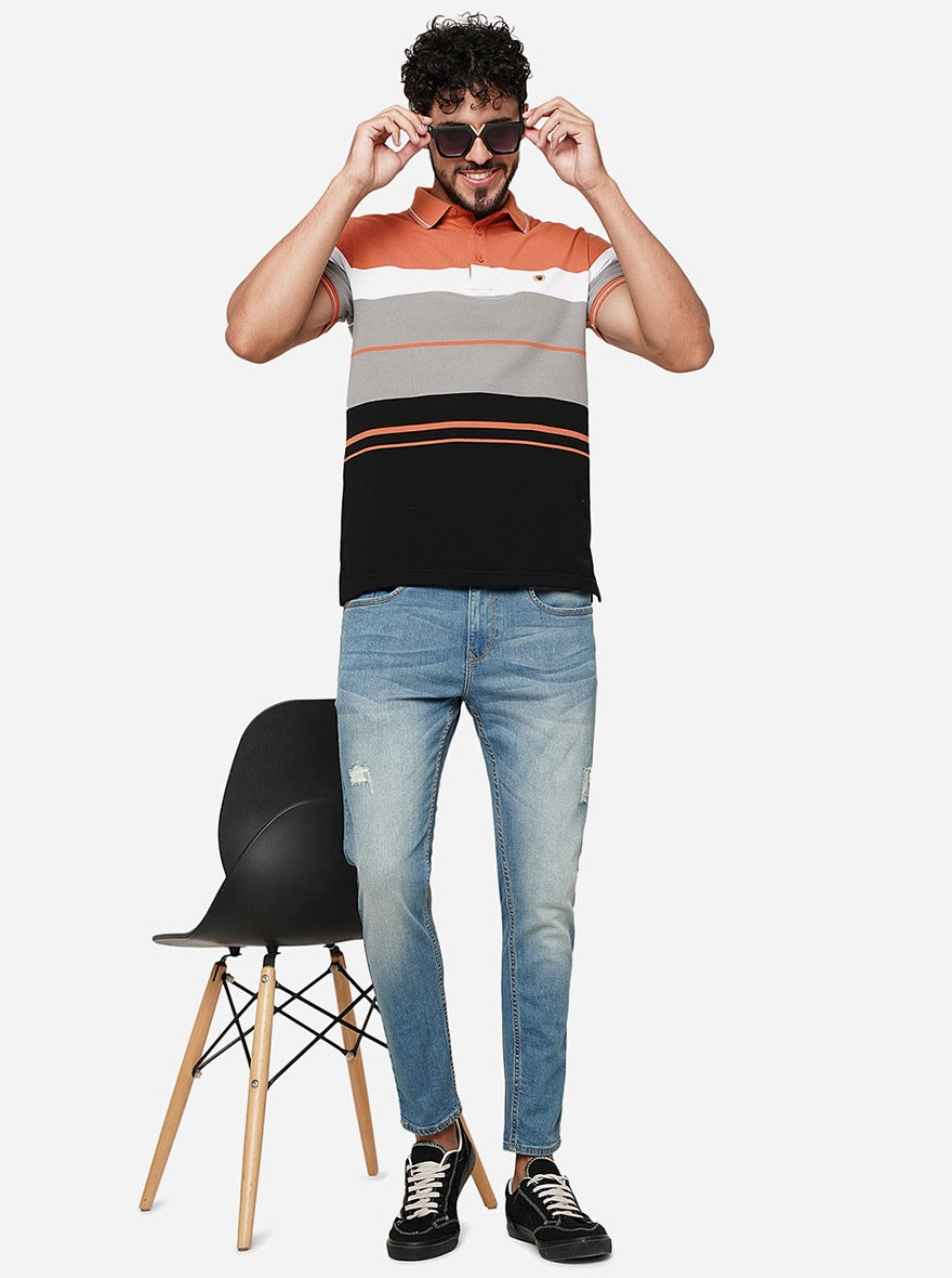 Details: This JadeBlue Men's Blue Jeans is constructed with Cotton Stretch fabric ensuring comfort, breathability, and excellent stretchability all day. Offers a Mid Rise waist with a Rider fit and a flat front for a sleek look that has been elevated with a Solid pattern. Features pockets, zipper, and button for closure. Match it with a T-shirt of your choice and a pair of canvas for an iconic look. Perfect for casual looks.