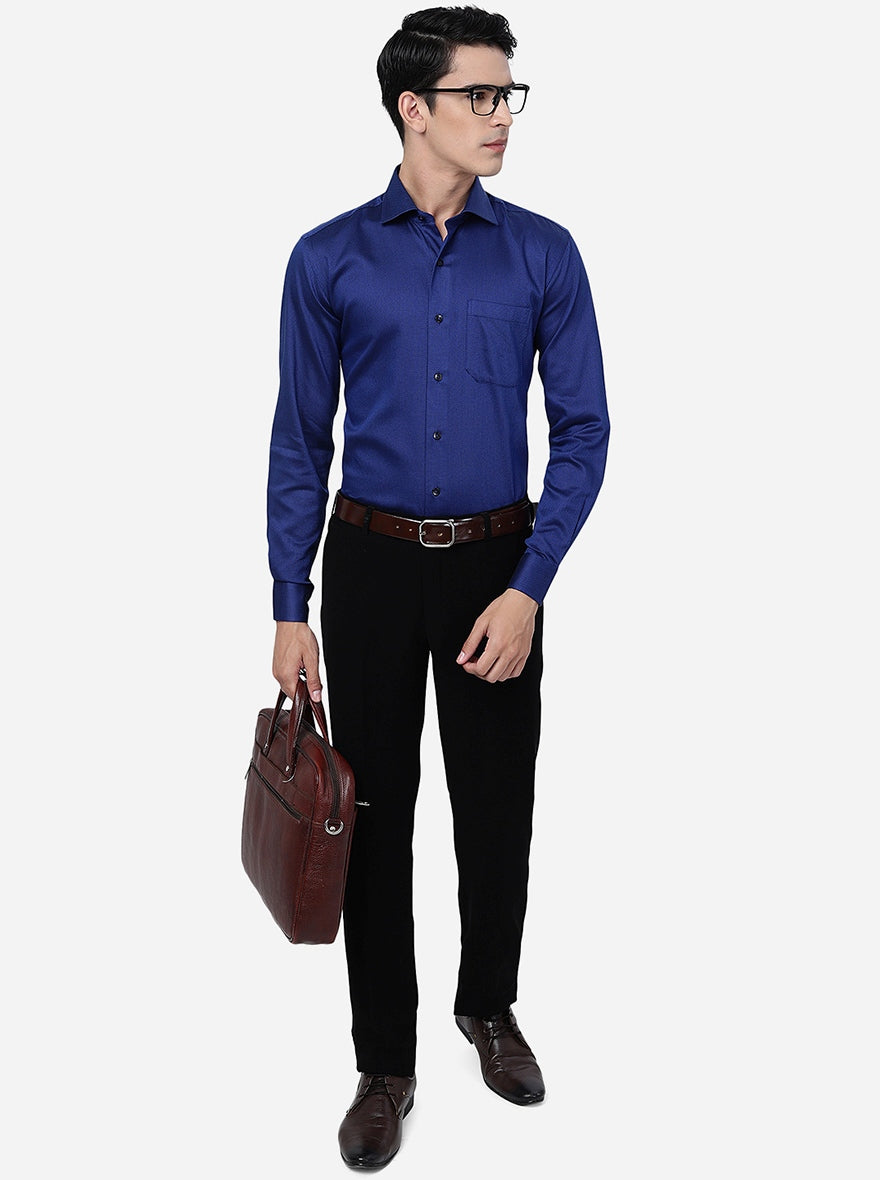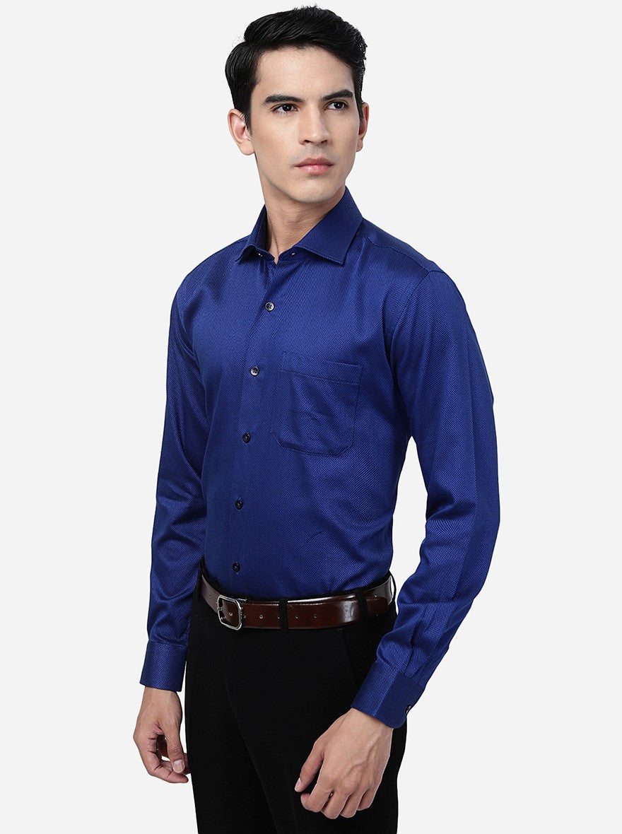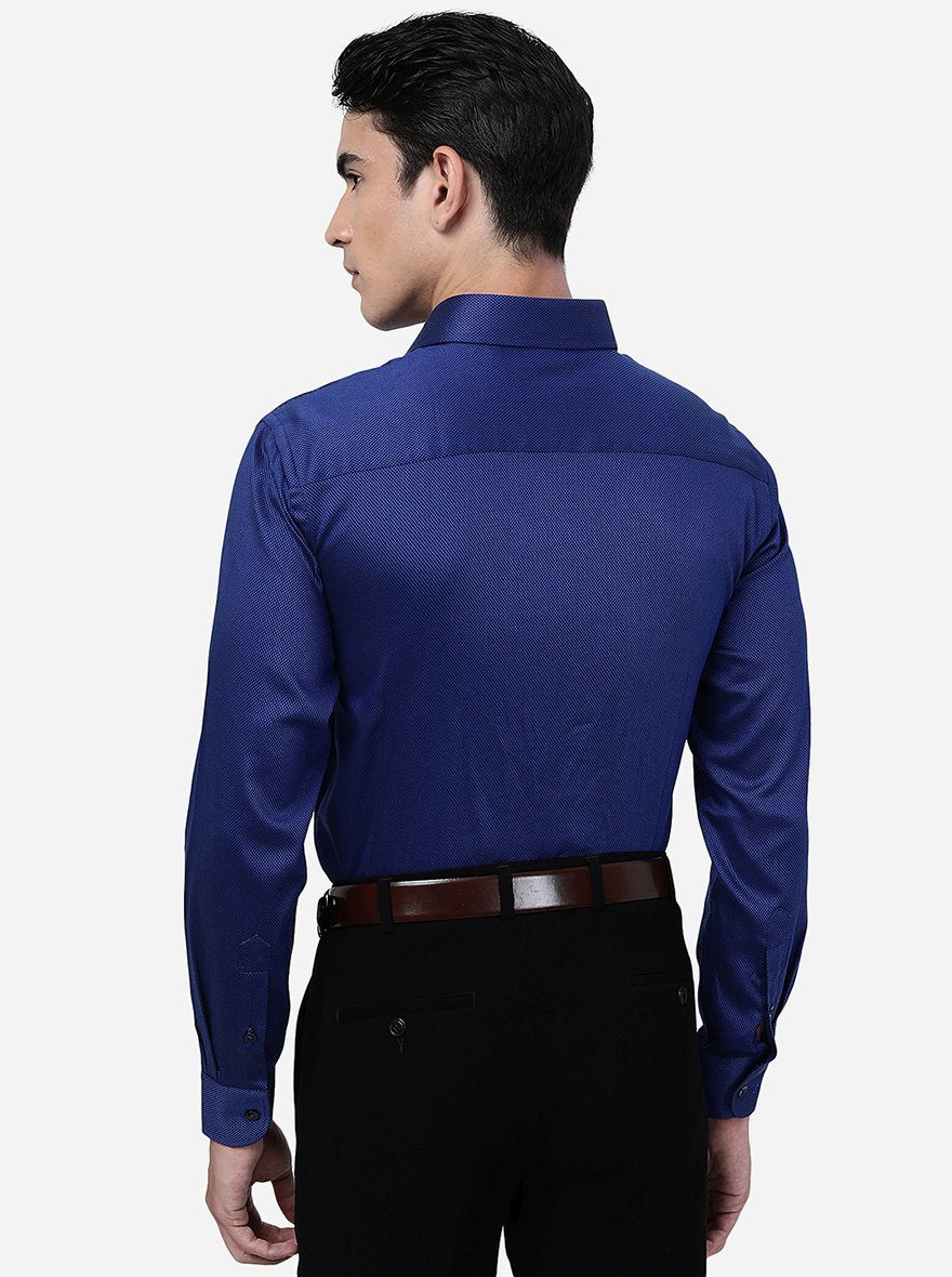 Blue Solid Slim Fit Formal Shirt | Metal