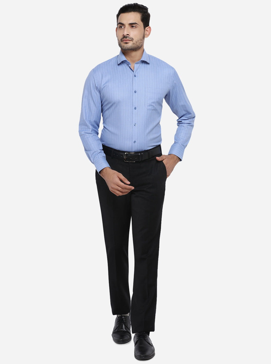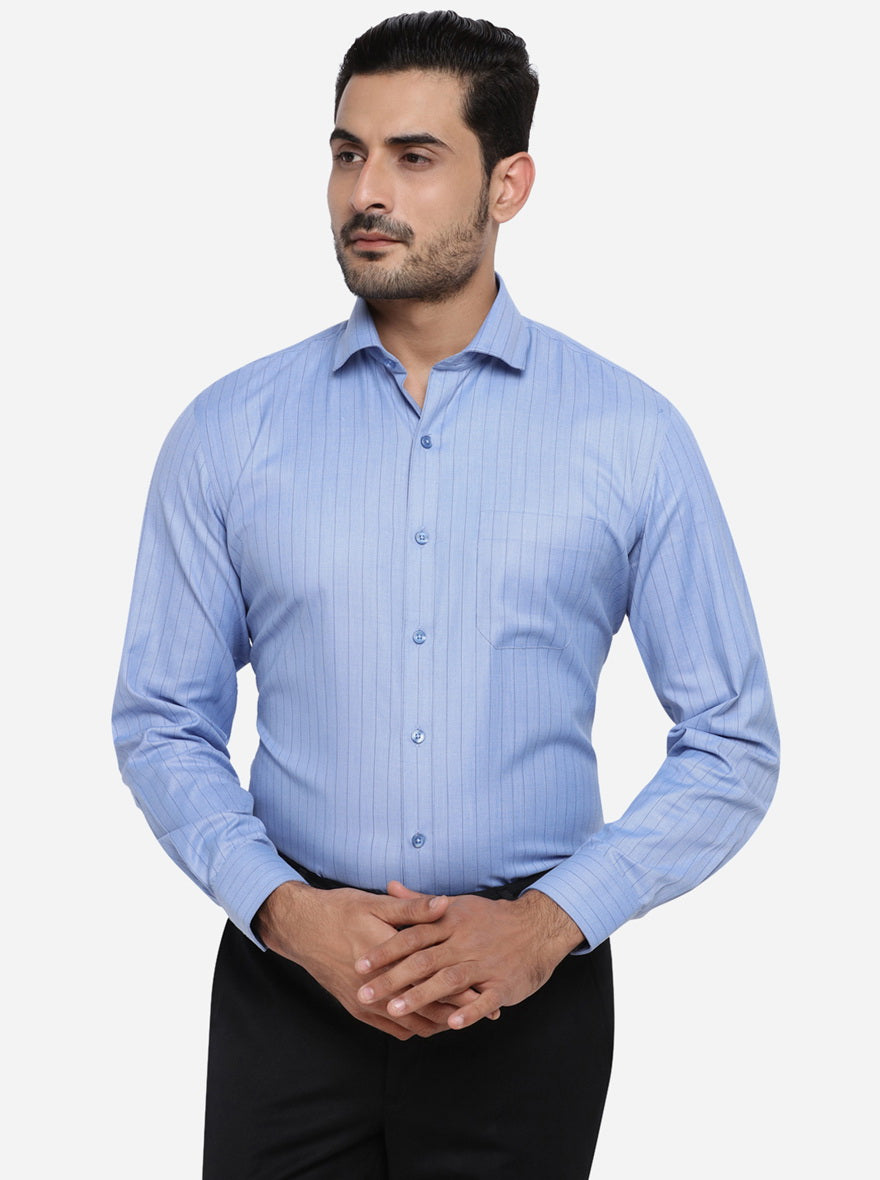 Blue Striped Regular Fit Formal Shirt | Greenfibre