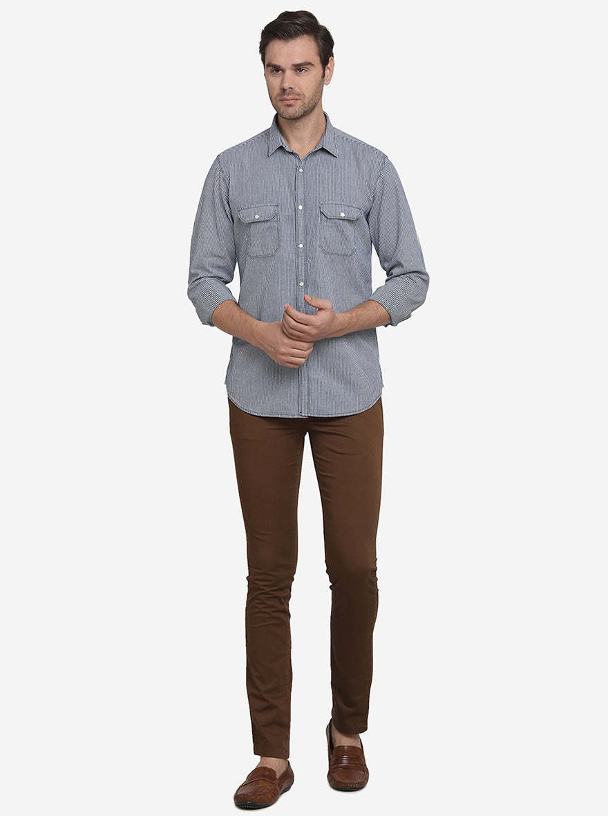 Details: Look dapper in a snap by wearing this Blue Striped shirt. Made from 100% Cotton fabric, this Slim Fit shirt will become your wardrobe favorite in no time. Team it with beige trousers and moccasins. Give a stylish lift to your casual men's shirt collection by adding this Blue shirt by JadeBlue. Featuring all-over Striped pattern, thisSlim Fit shirt is made from100% Cotton fabric, which ensures total comfort whole day. This100% Cotton shirt for men by JadeBlue is high on style and comfort. Crafted to perfection, this stunning piece will bestow you with a comfy look from AM to PM. Let style be your second name when you step out wearing this Blue Striped shirt