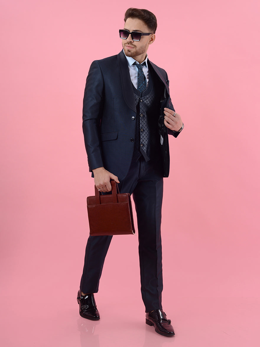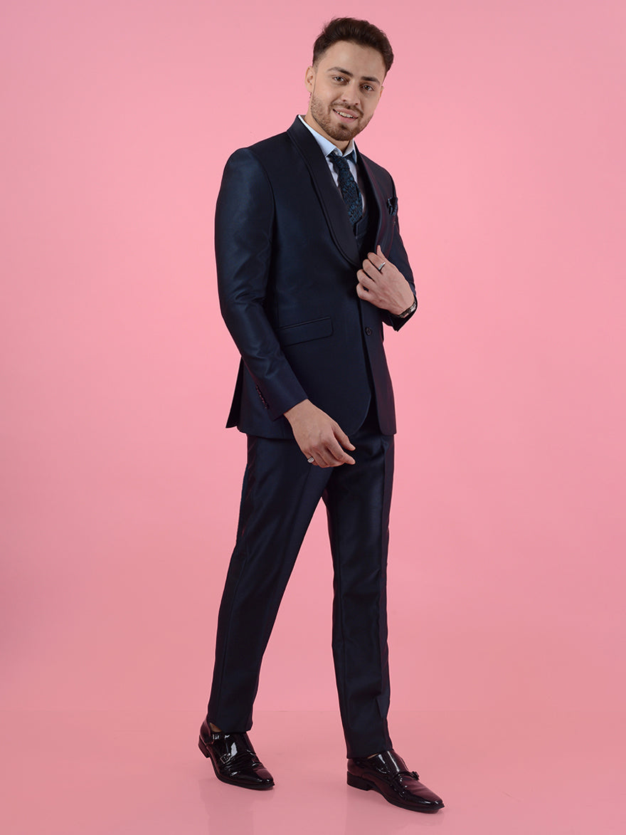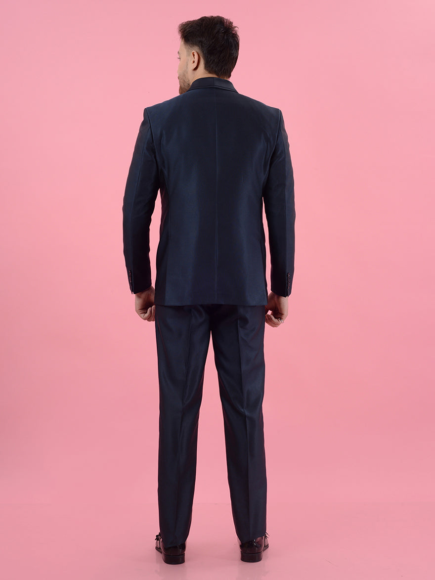 Details: Introducing the JadeBlue Men's Suit, a timeless and sophisticated addition to your formal wardrobe. Made with high-quality Terry Rayon fabric, this suit offers a Regular Fit for both comfort and style. The Self Textured pattern adds a touch of elegance, while the classic Blue color ensures a polished look for any occasion. With Full Sleeves and a 2 buttons, shawl lapel, classic cut design, this suit is perfect for a reception or any formal event. The impeccable tailoring and attention to detail make this suit a must-have for the modern gentleman. Upgrade your style and elevate your confidence with the JadeBlue Men's Suit. Make a lasting impression with a suit that exudes class and sophistication in every step you take. Choose JadeBlue for a timeless look that never goes out of style.