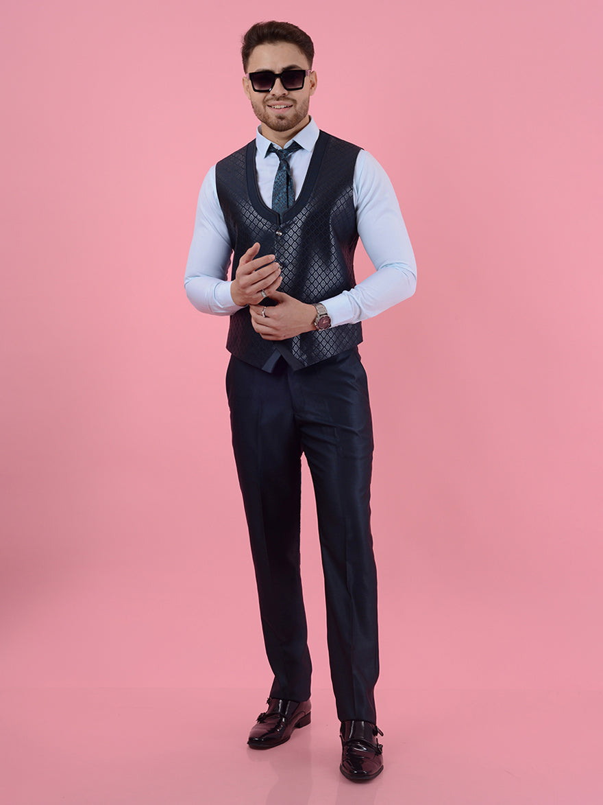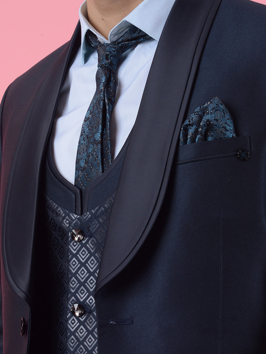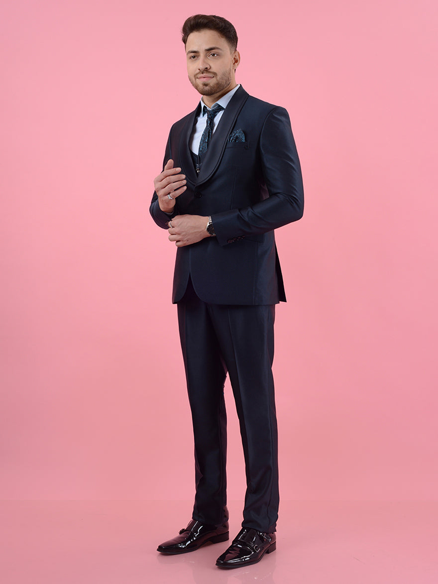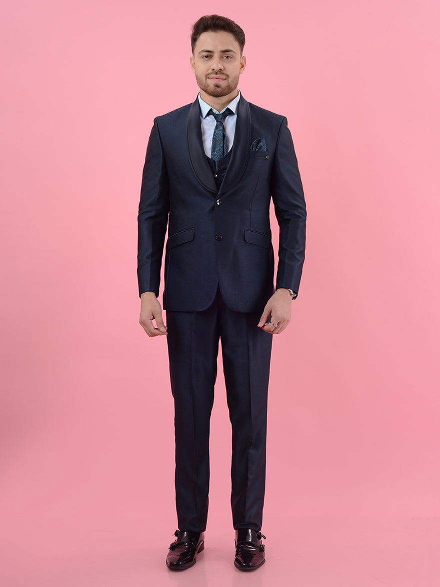Details: Introducing the JadeBlue Men's Suit, a timeless and sophisticated addition to your formal wardrobe. Made with high-quality Terry Rayon fabric, this suit offers a Regular Fit for both comfort and style. The Self Textured pattern adds a touch of elegance, while the classic Blue color ensures a polished look for any occasion. With Full Sleeves and a 2 buttons, shawl lapel, classic cut design, this suit is perfect for a reception or any formal event. The impeccable tailoring and attention to detail make this suit a must-have for the modern gentleman. Upgrade your style and elevate your confidence with the JadeBlue Men's Suit. Make a lasting impression with a suit that exudes class and sophistication in every step you take. Choose JadeBlue for a timeless look that never goes out of style.