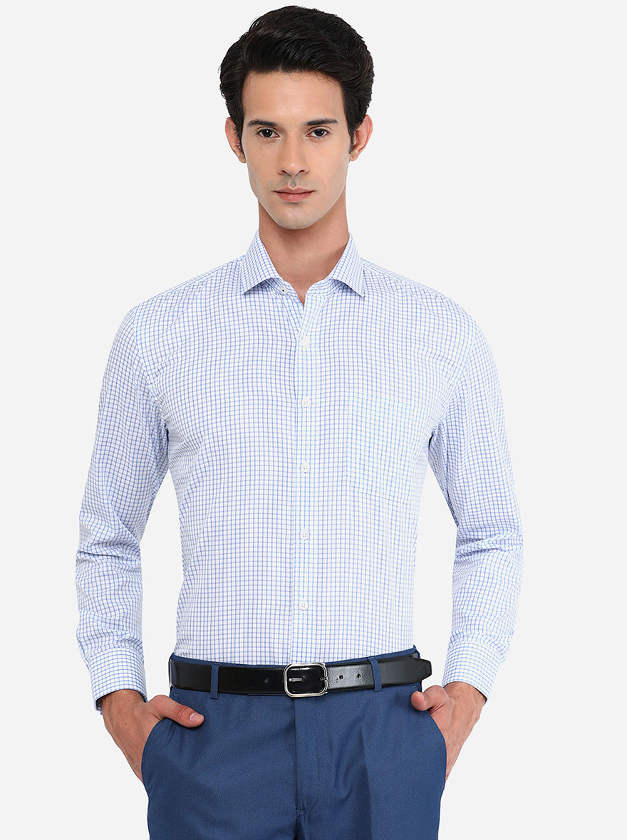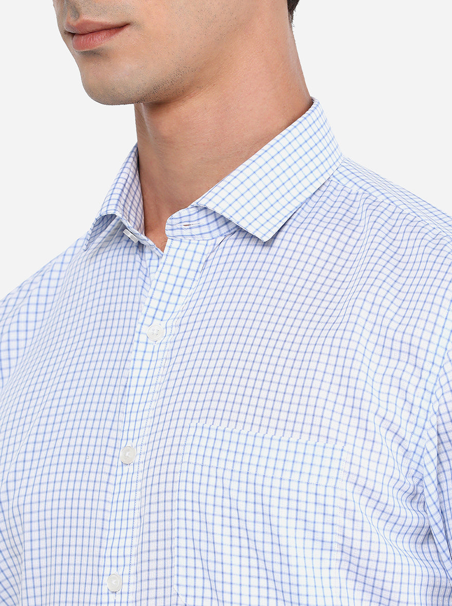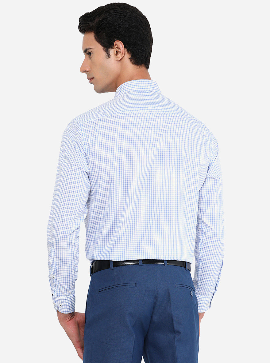 Blue & White Checked Regular Fit Formal Shirt | JadeBlue