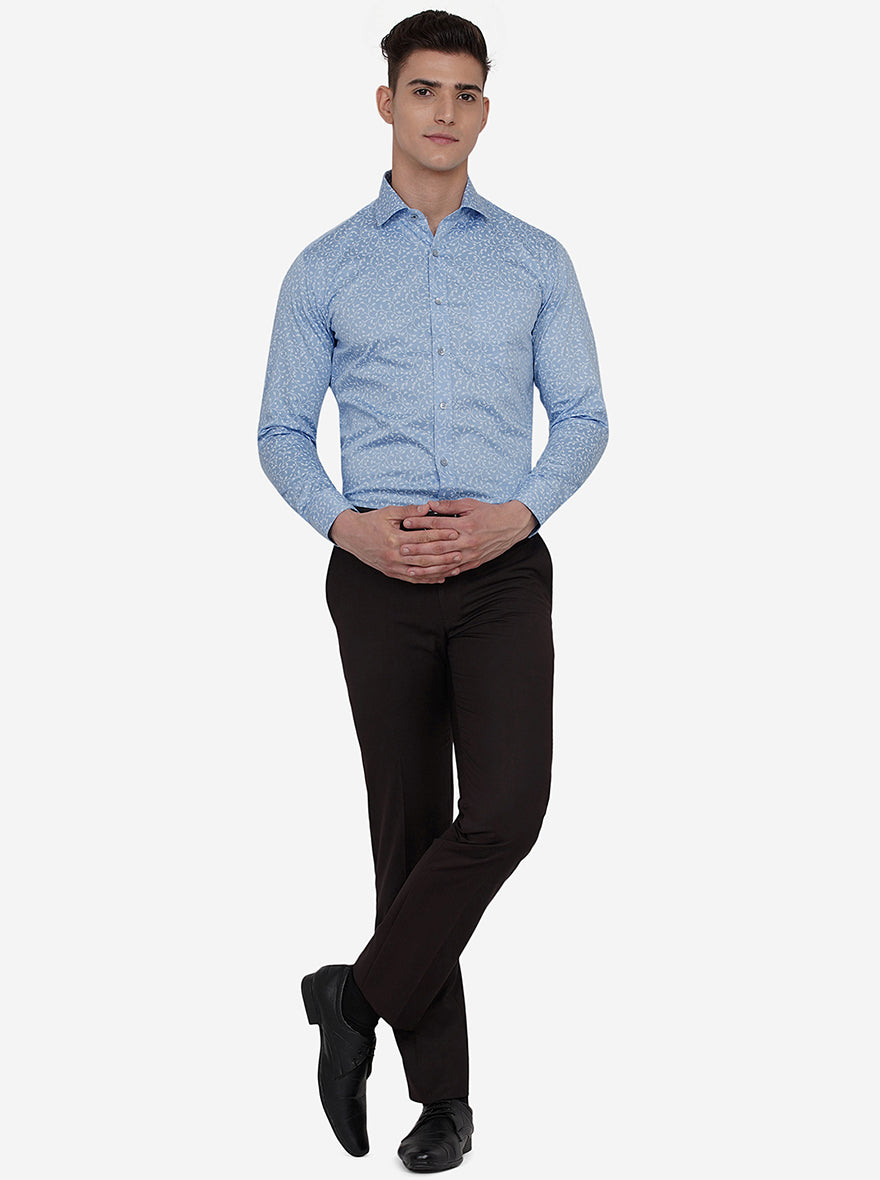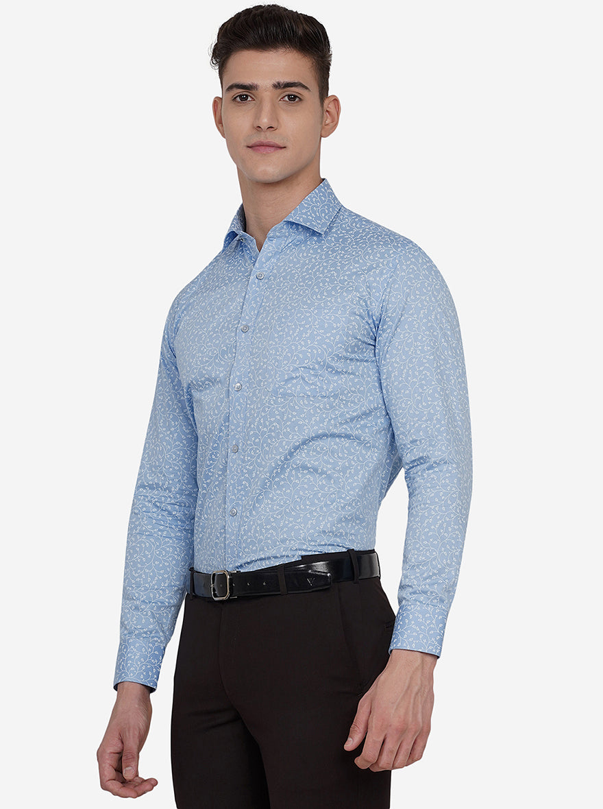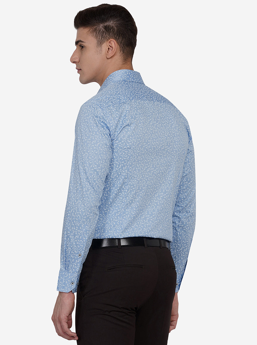 Blue & White Printed Slim Fit Formal Shirt | Greenfibre