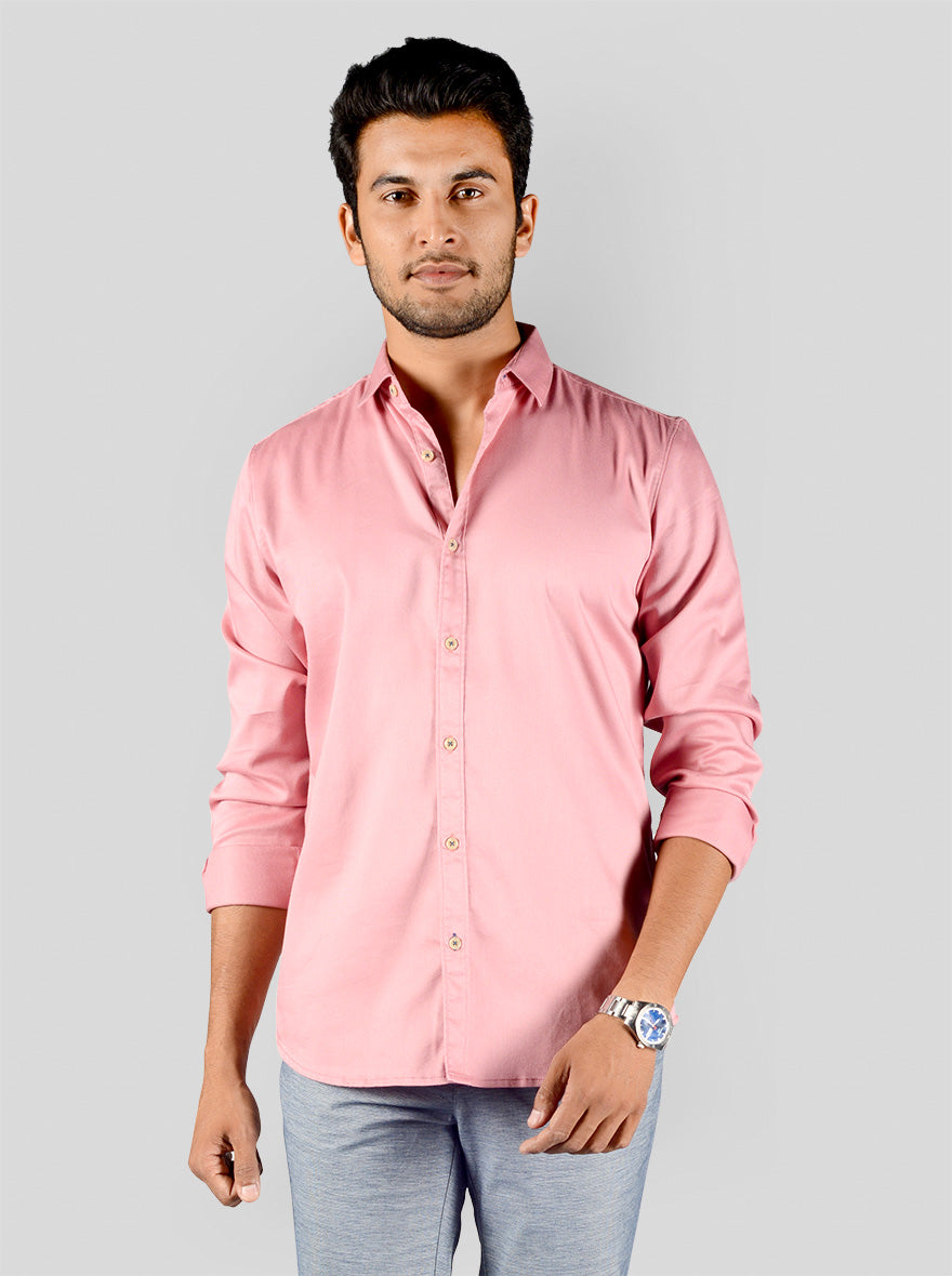 Blush Pink Solid Slim Fit Casual Shirt | Greenfibre