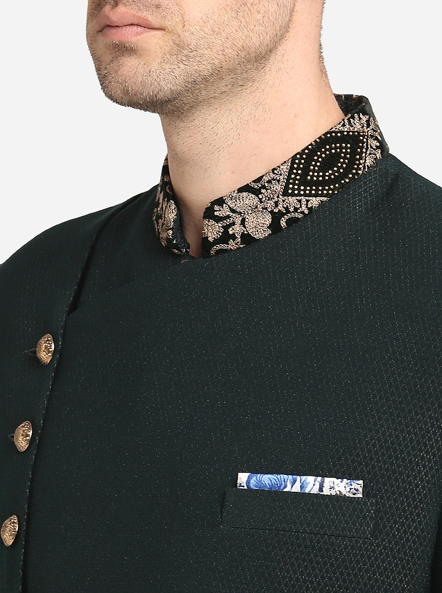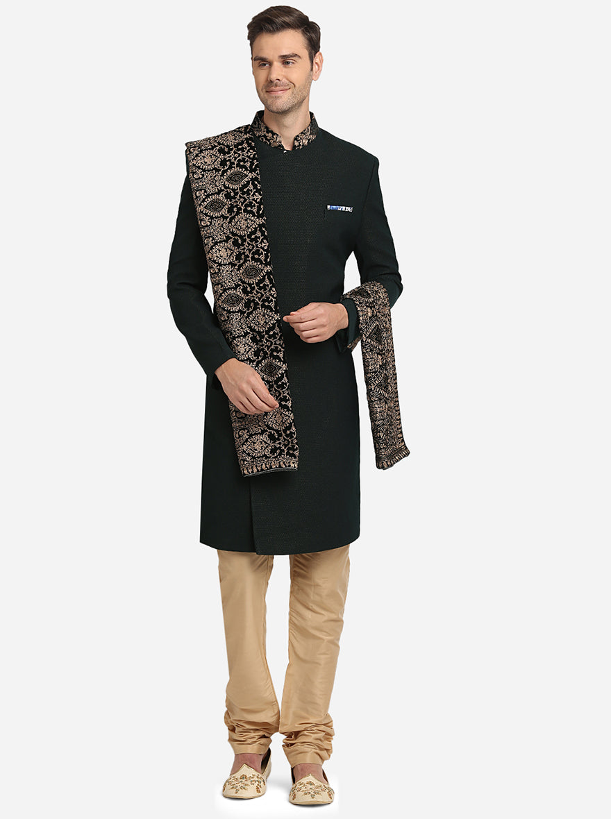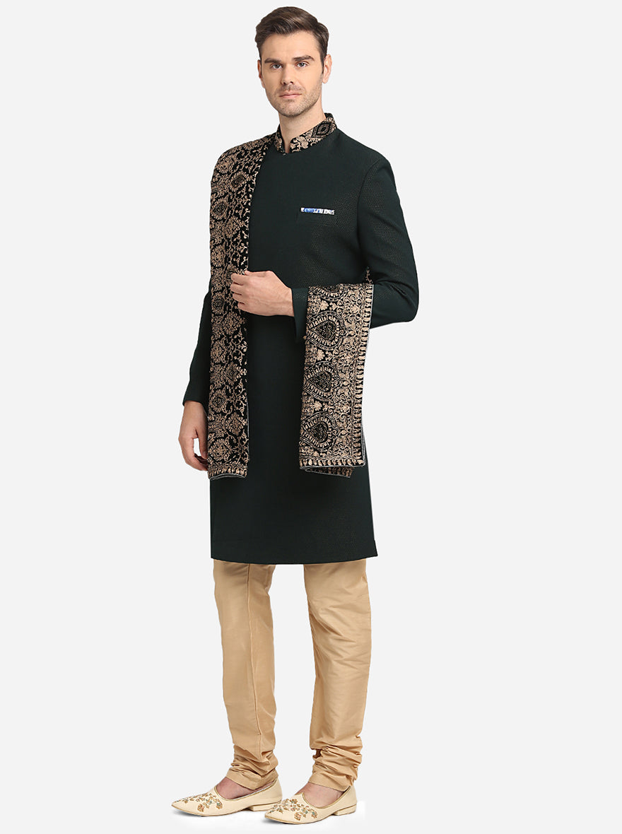 Bottle Green & Golden Indowestern | Azania