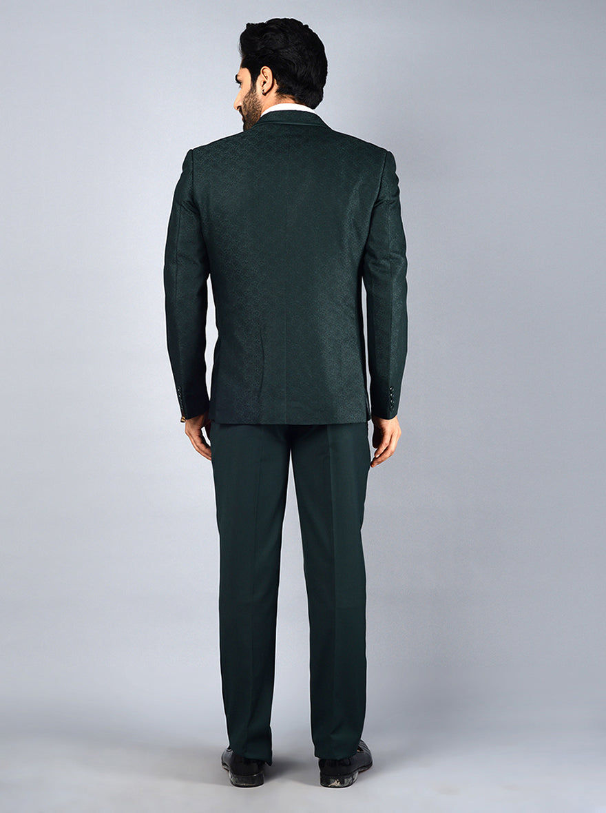 Bottle Green Self Design Regular Fit Suit | JadeBlue