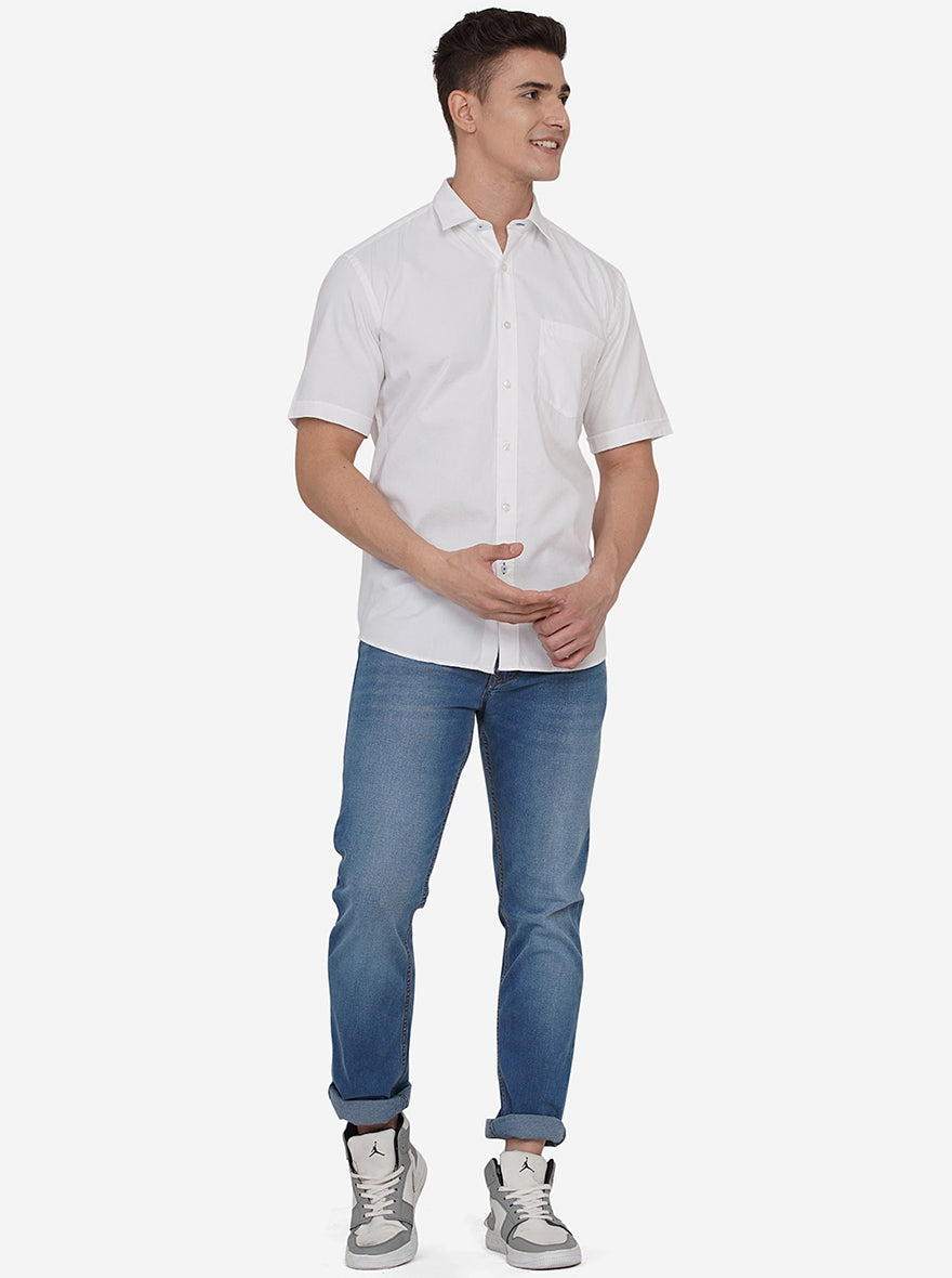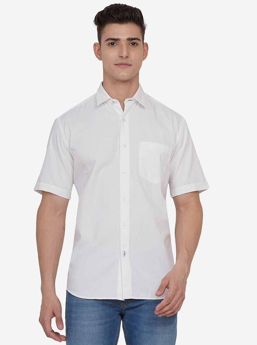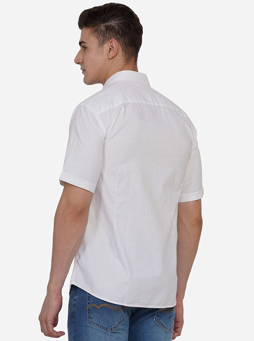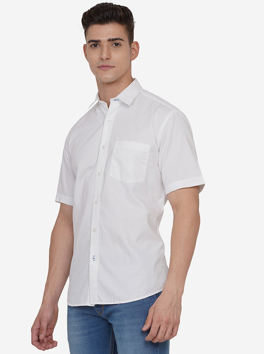 Bright White Solid Slim Fit Casual Shirt | JadeBlue
