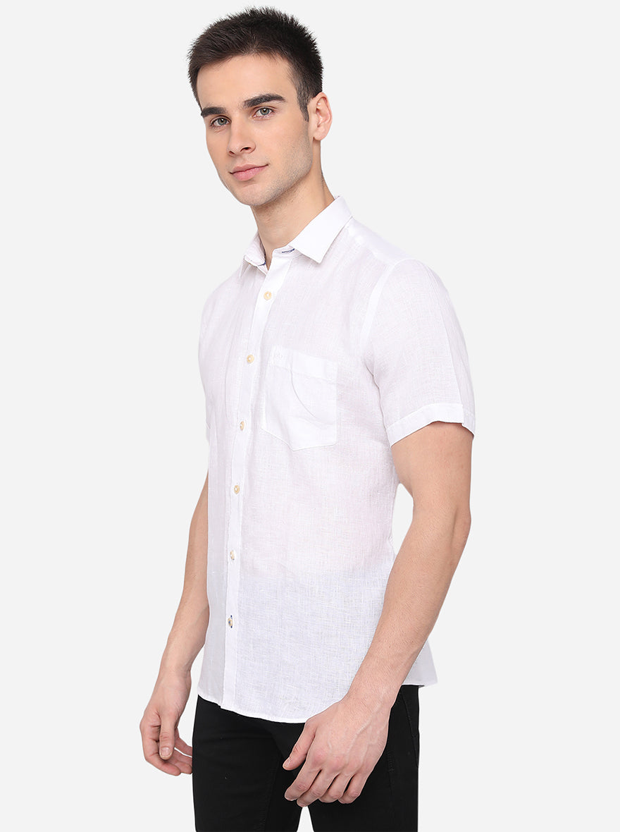 Details: Add a whiff of fresh fashion to your wardrobe with this Bright White shirt from the latest collection of JadeBlue. It features a shirt collar, half-sleeves and button placket on the front. Tailored to a slim-fit, it is adorned with a solid pattern, it makes up for a versatile choice. Crafted with pure cotton, it provides you with a great comfort during extended hours. Perfect for casual wear. Team it with a pair of clean look jeans and loafers and you are good to go.
