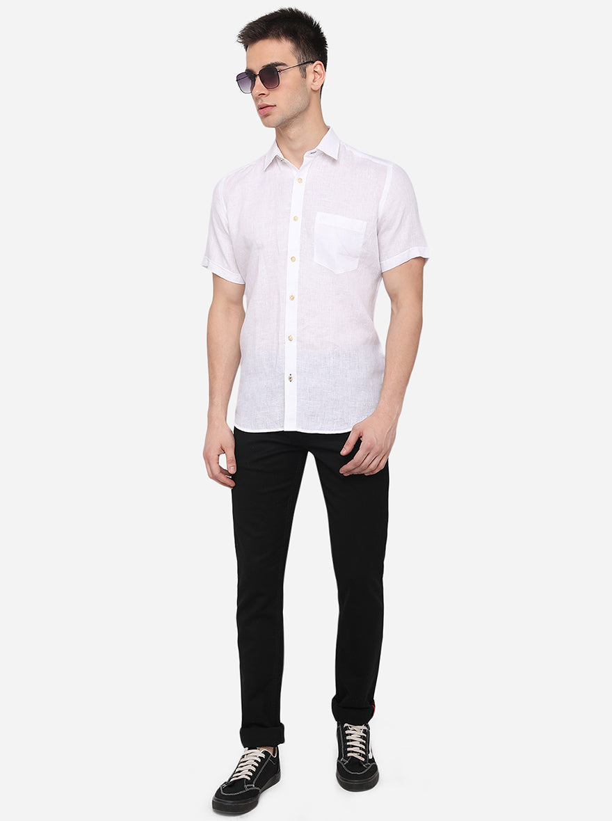 Bright White Solid Slim Fit Semi Casual Shirt | JadeBlue