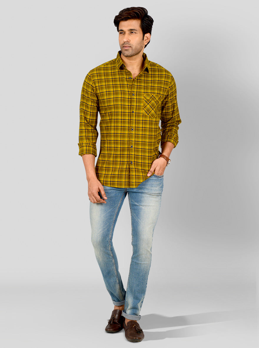 Bronze Yellow Checked Slim Fit Casual Shirt | Greenfibre