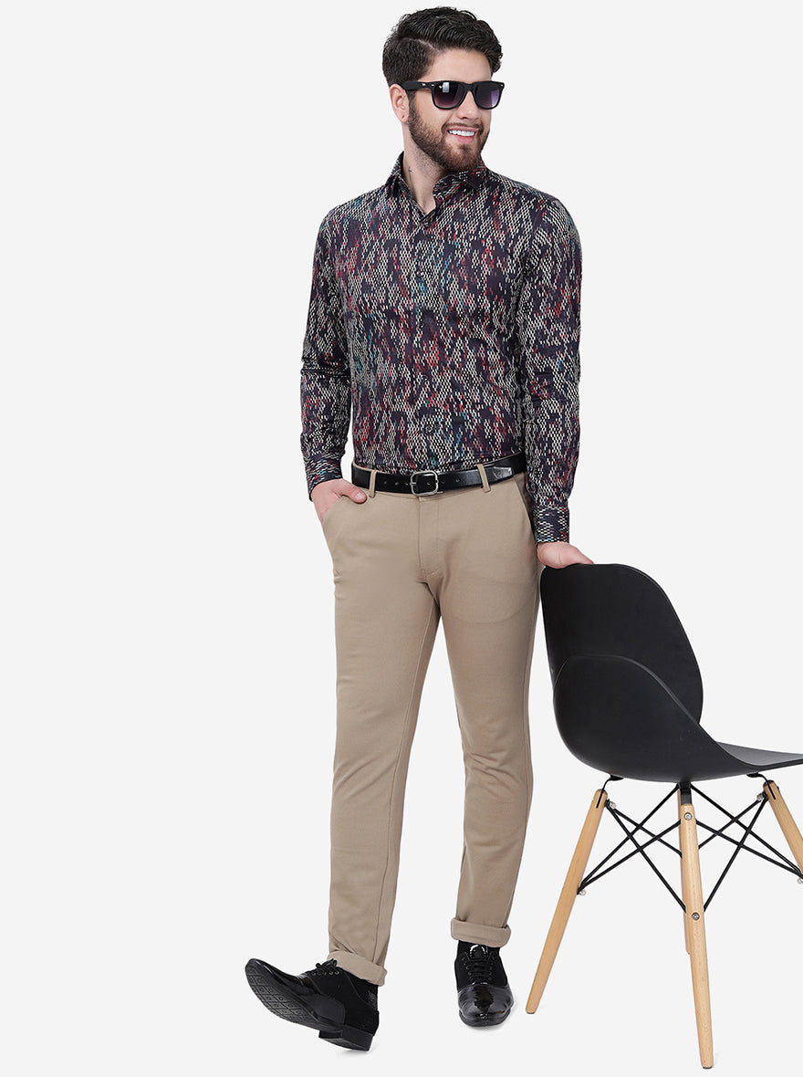 Details: This Brown & Black 100% Cotton Printed Formal Party Wear Shirt is from the newest collection of JB Studio. Made out of 100% Cotton promising a comfortable and breathable wearing experience. Offers a slim fit for a sleek look that has been elevated with a printed pattern. Feature full sleeves, and a regular shirt collar. Match it with the well-fitted trousers of your choice and a pair of shoes and you are ready to go.
