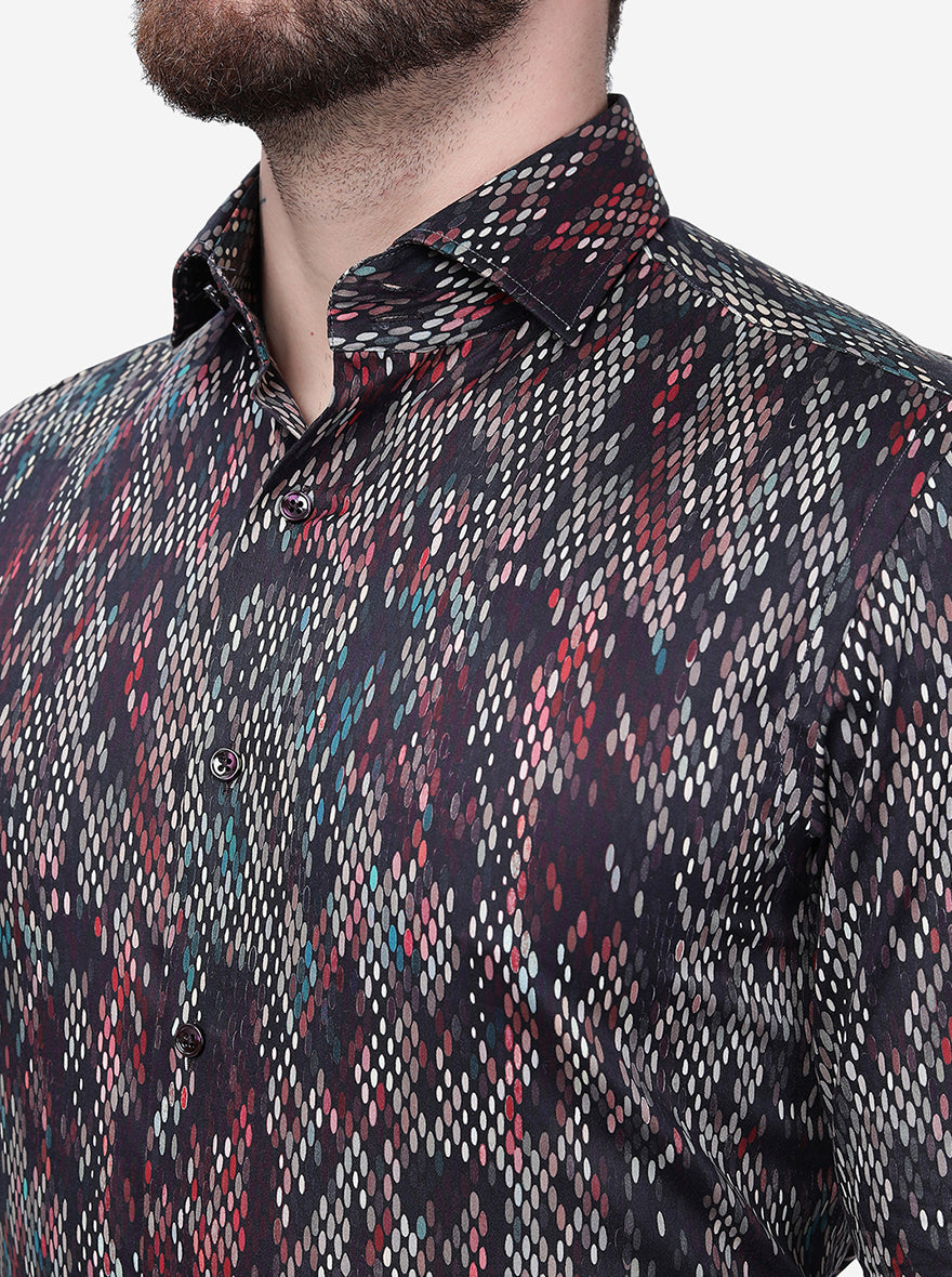 Brown & Black Printed Slim Fit Party Wear Shirt | JB Studio