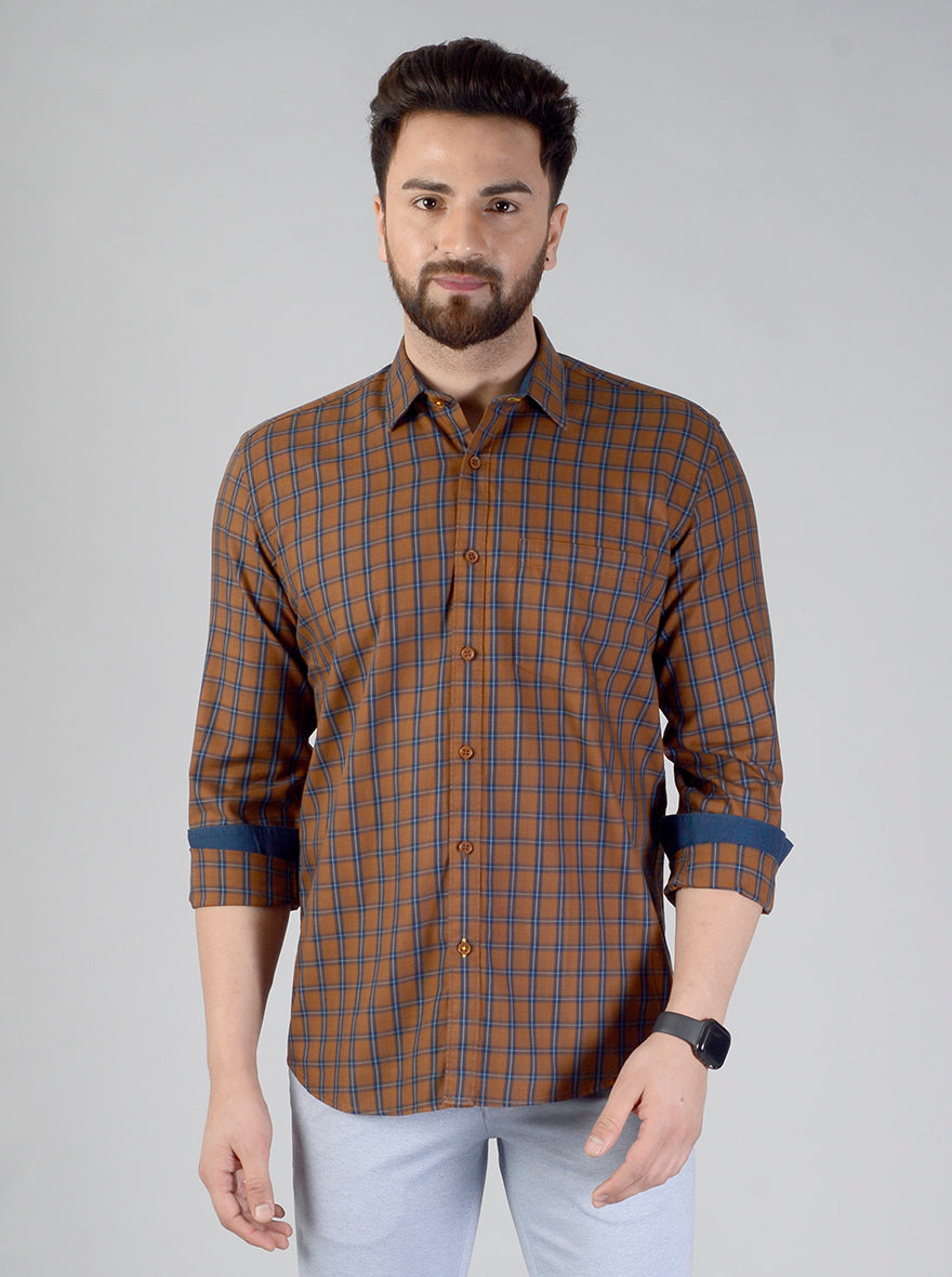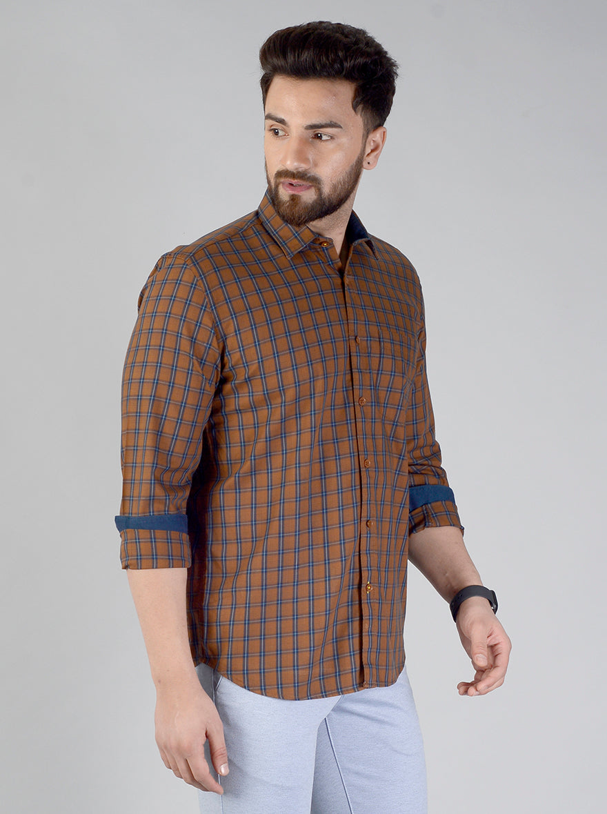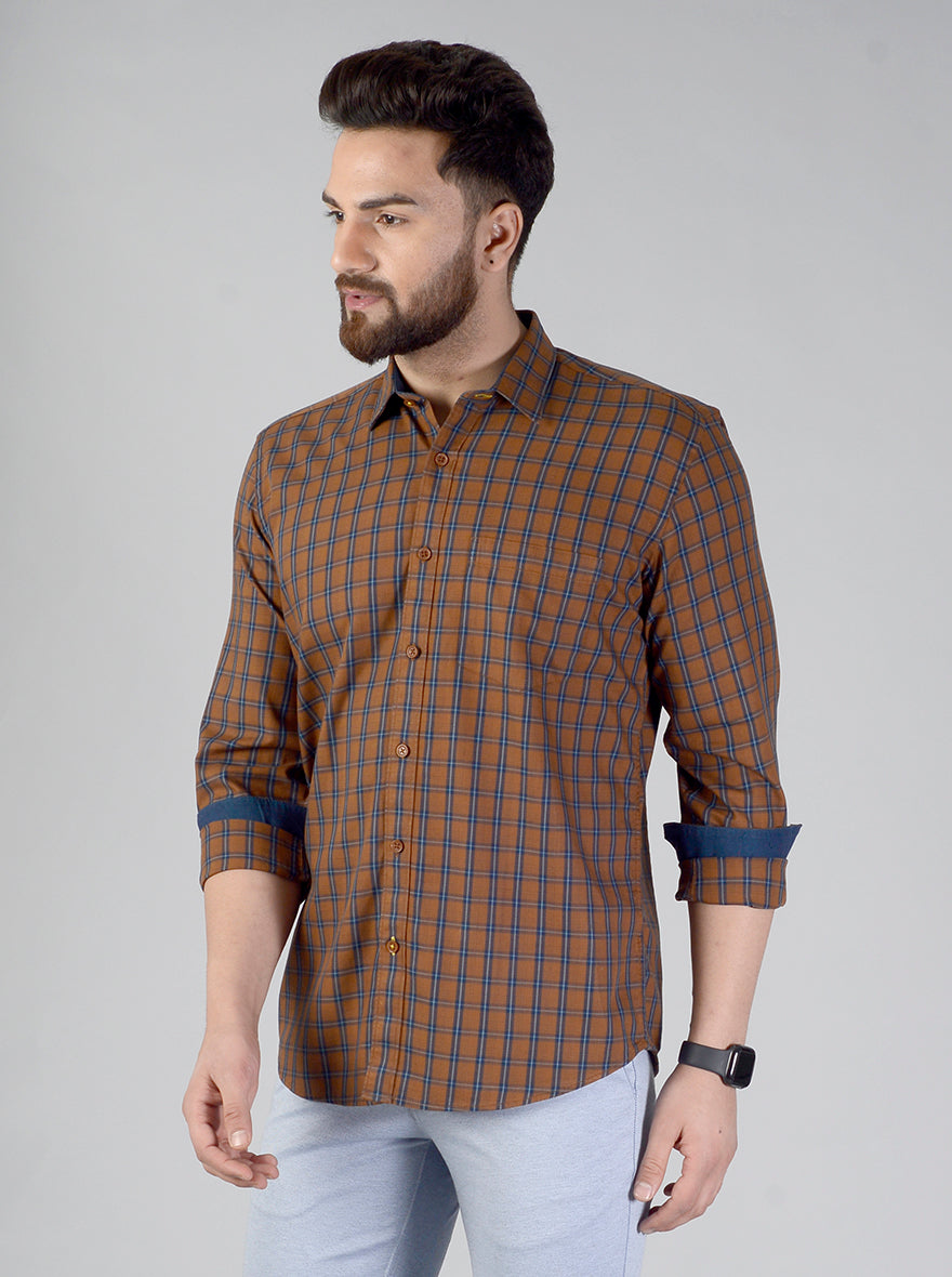 Brown Checked Regular Fit Casual Shirt | Greenfibre