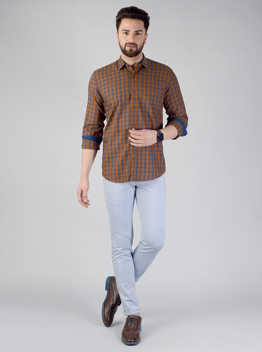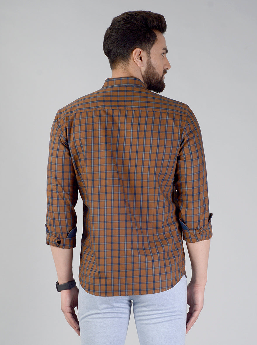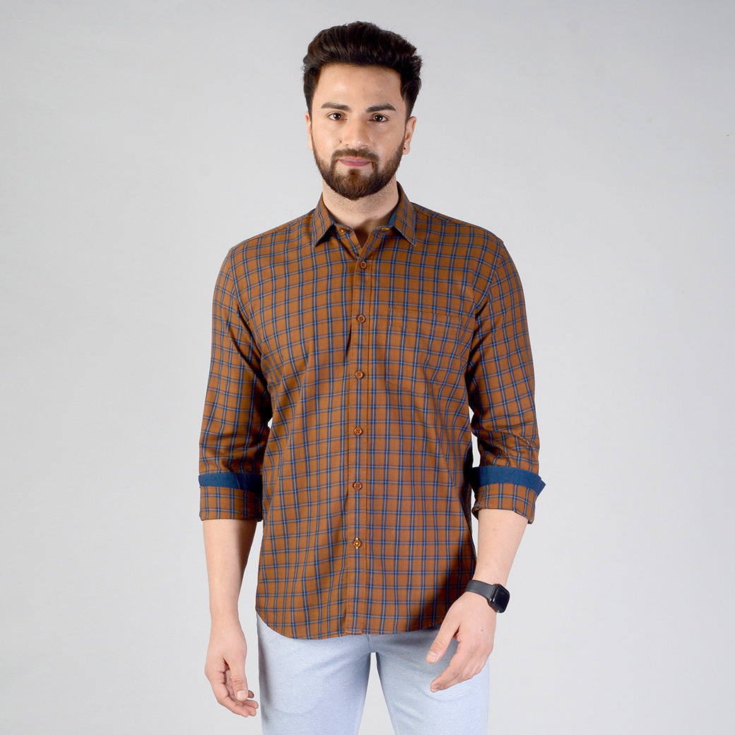Brown Checked Regular Fit Casual Shirt | Greenfibre
