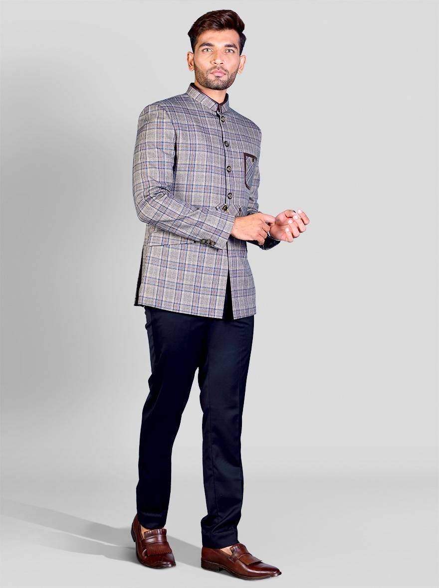 Details: Get a distinct ethnic look by donning this brown jodhpuri suit. Crafted from terry rayon fabric, this regular fit features mandarin collar, front buttons fastening and 2 flap pockets.