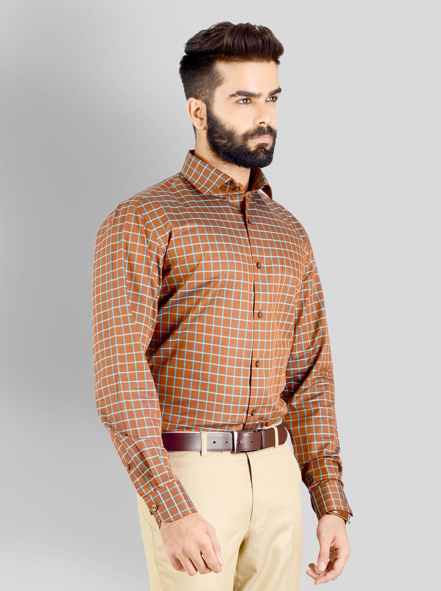 Brown & Light Blue Checked Slim Fit Evening Wear Shirt | Metal
