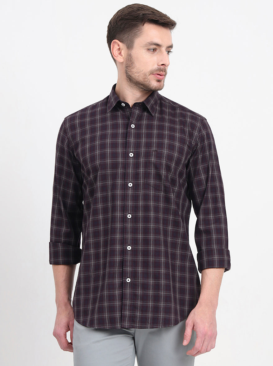Brown & Maroon Checked Regular Fit Semi Casual Shirt | JadeBlue