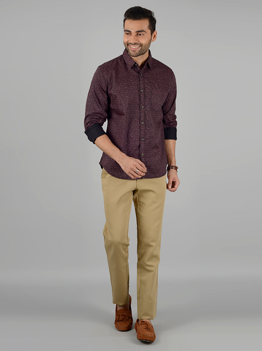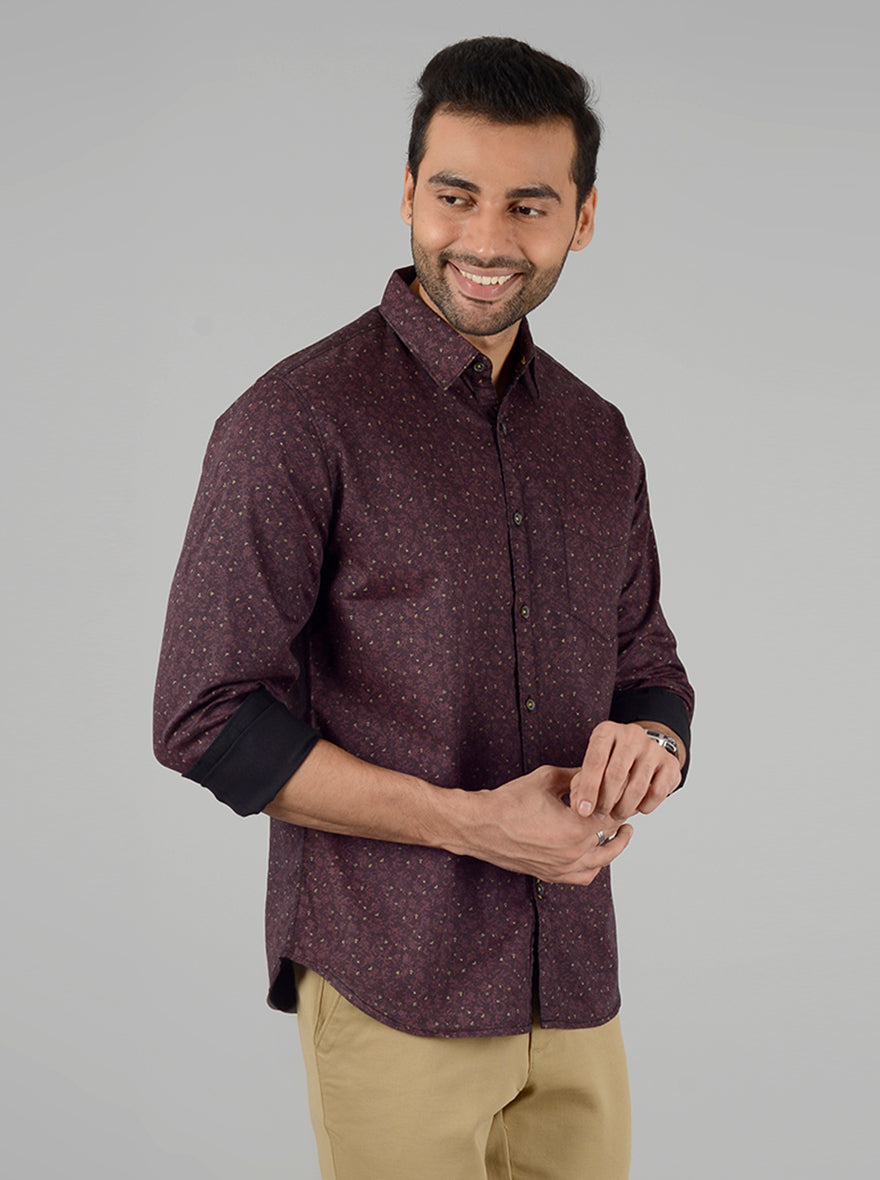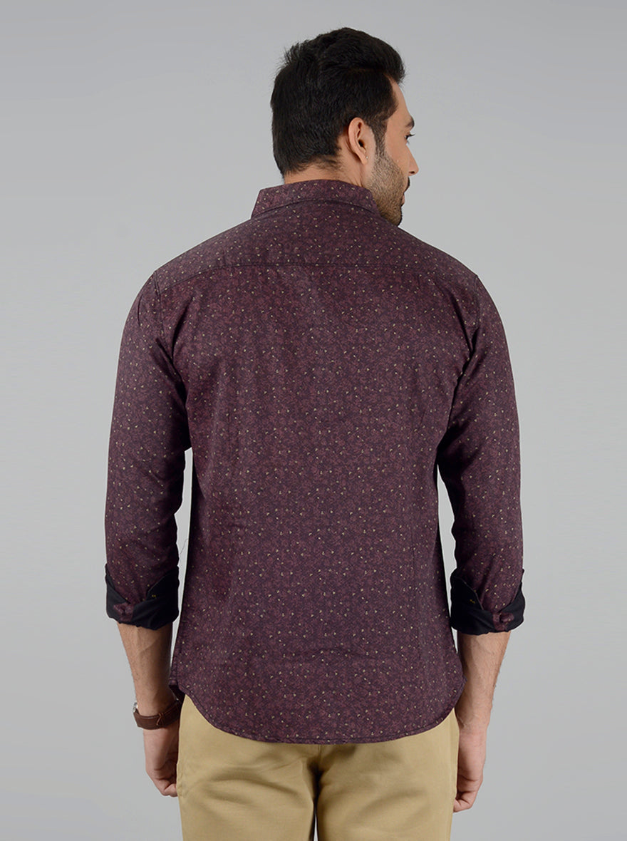 Brown Printed Slim Fit Casual Shirt | Greenfibre
