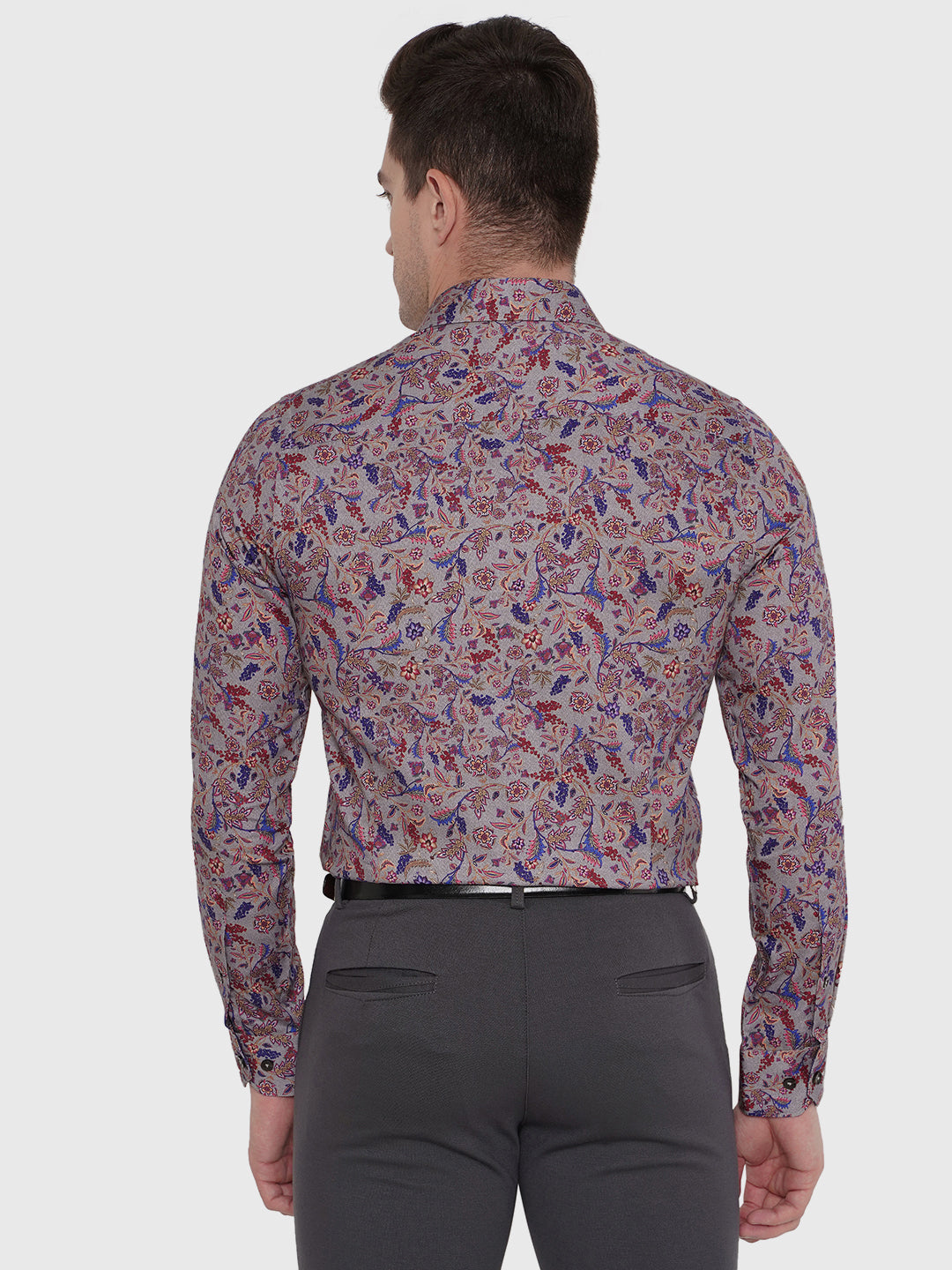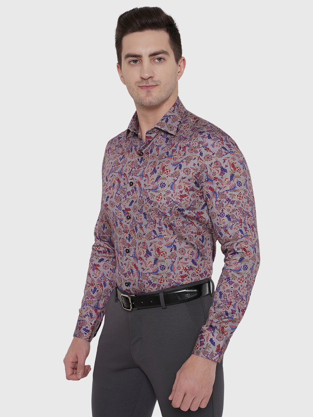 Brown Printed Slim Fit Party Wear Shirt | JB Studio