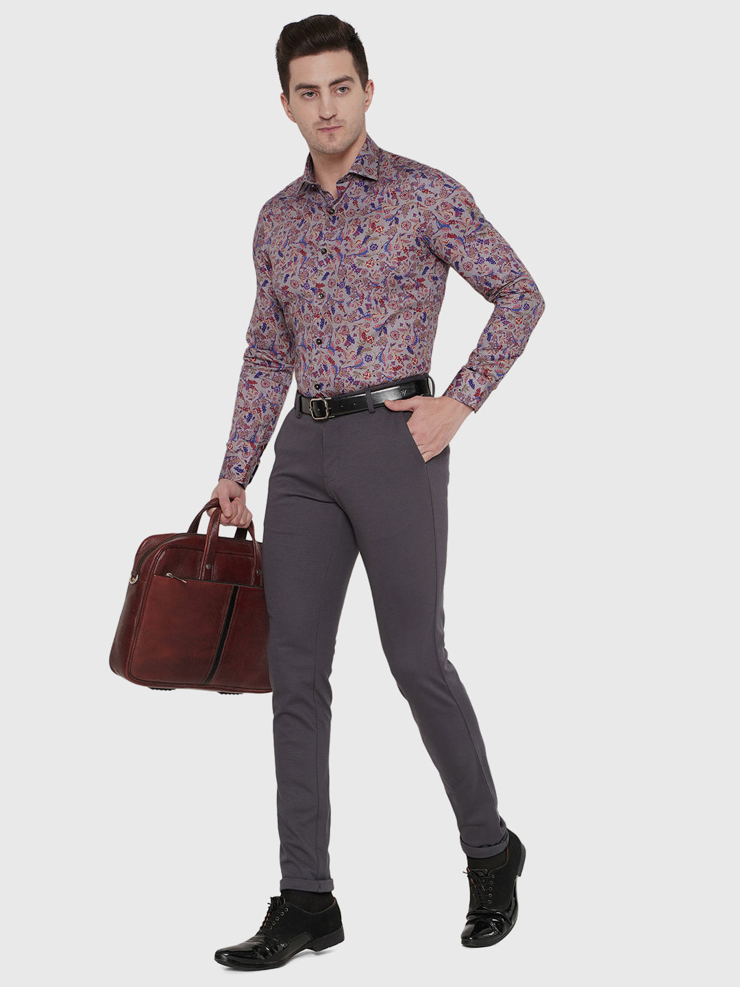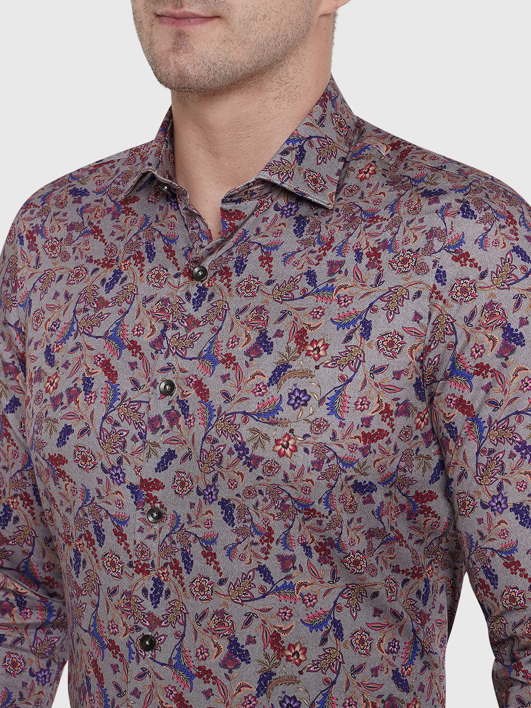 Details: JB Studio Men's Brown Printed Slim Fit Party Wear Shirt
