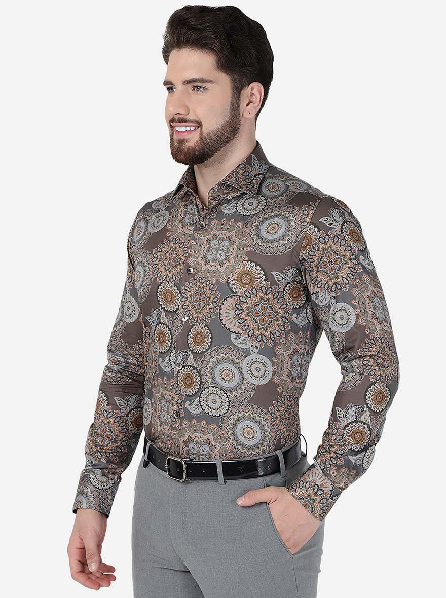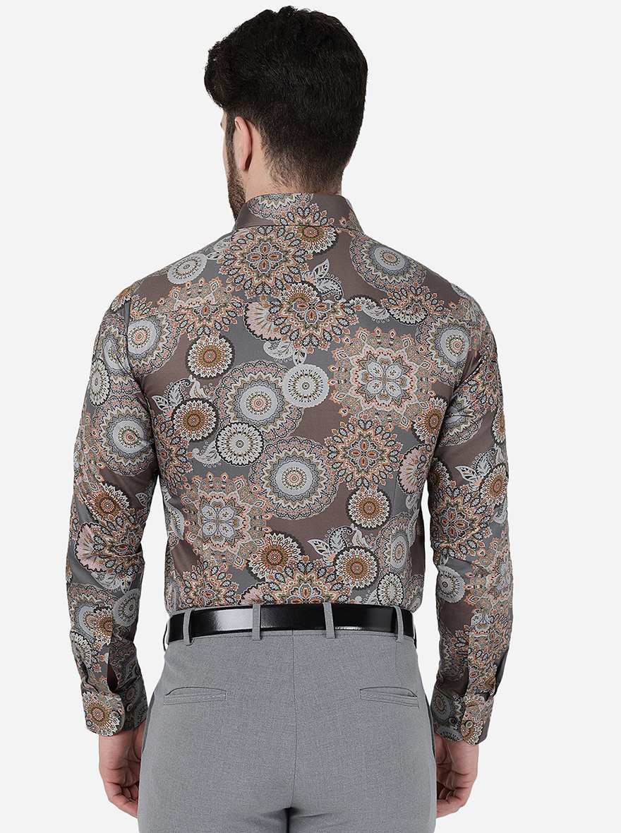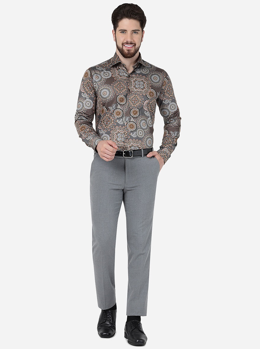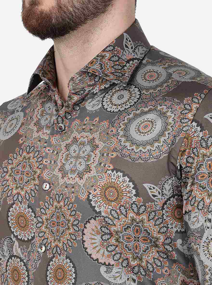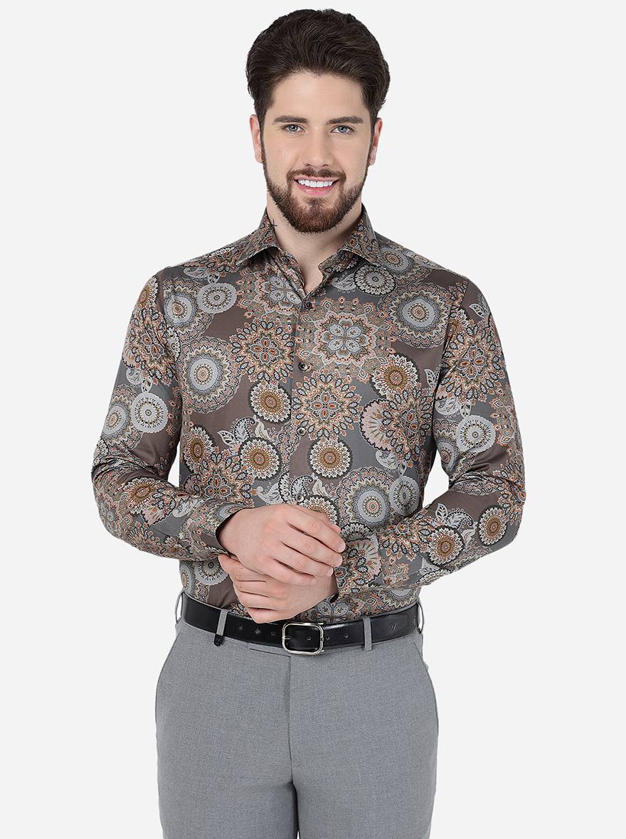 Brown Printed Slim Fit Party Wear Shirt | Wyre
