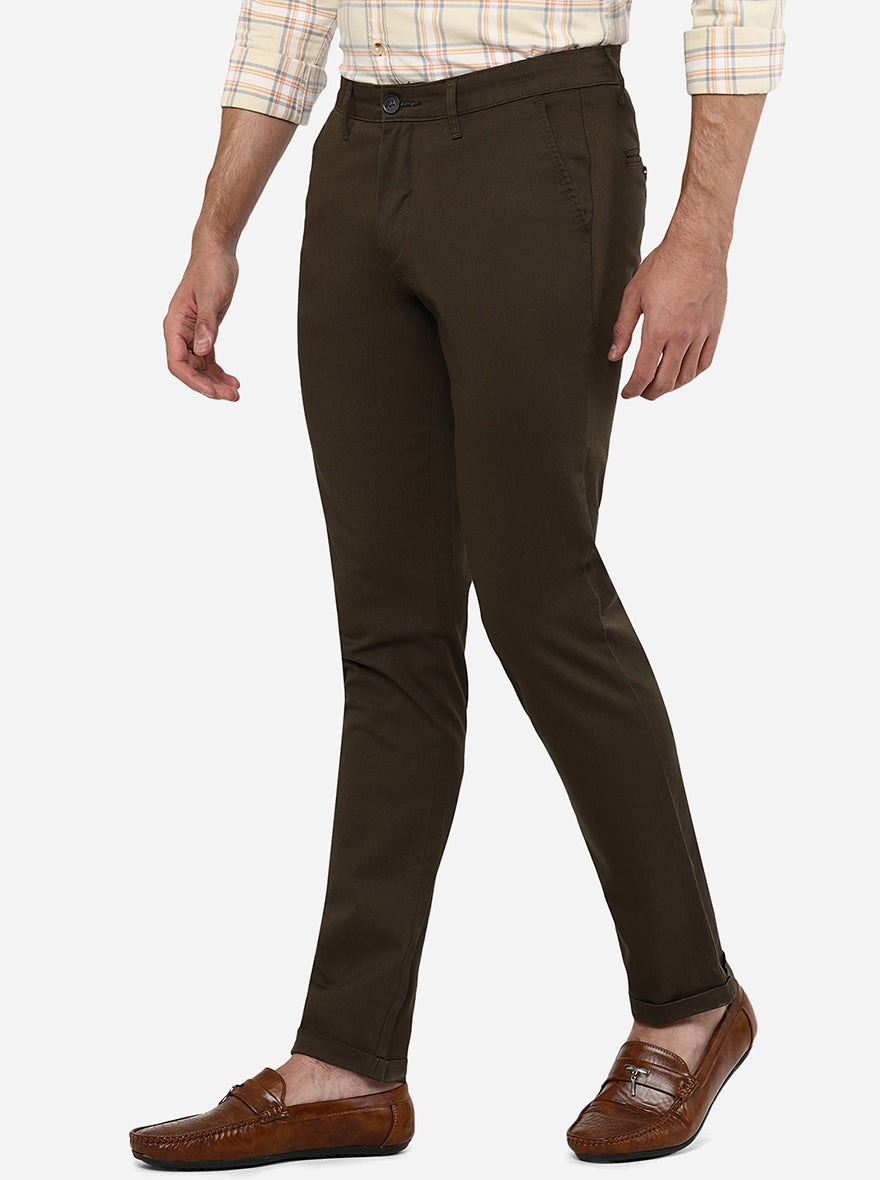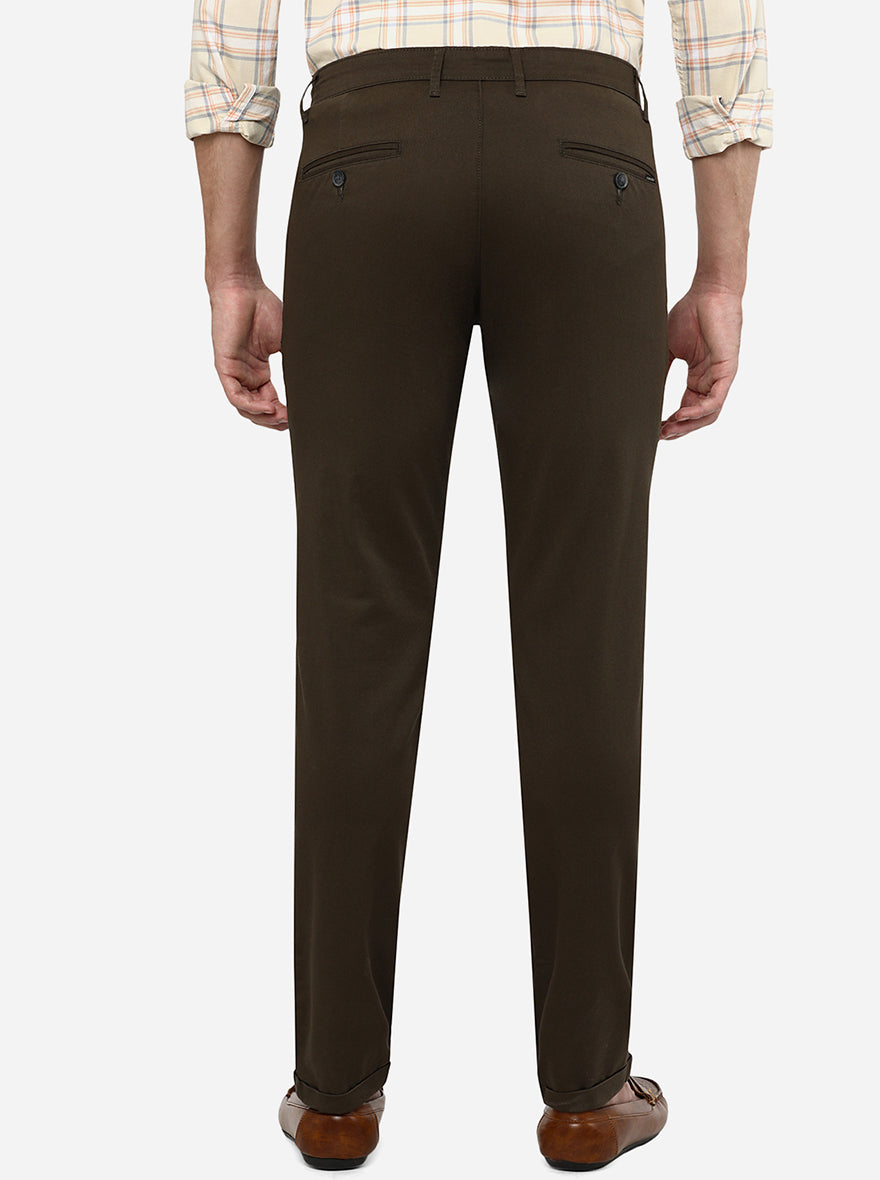 Brown Solid Neo Fit Casual Trouser | Greenfibre